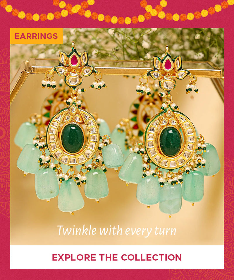 Shop By Jewellery Type: Chaandbali Earrings | Choker Necklace | Drops & Danglers | Hoop Earrings | Jhumka Earrings| Kadas Women | Payal | Rani Haar | Studs Earrings.