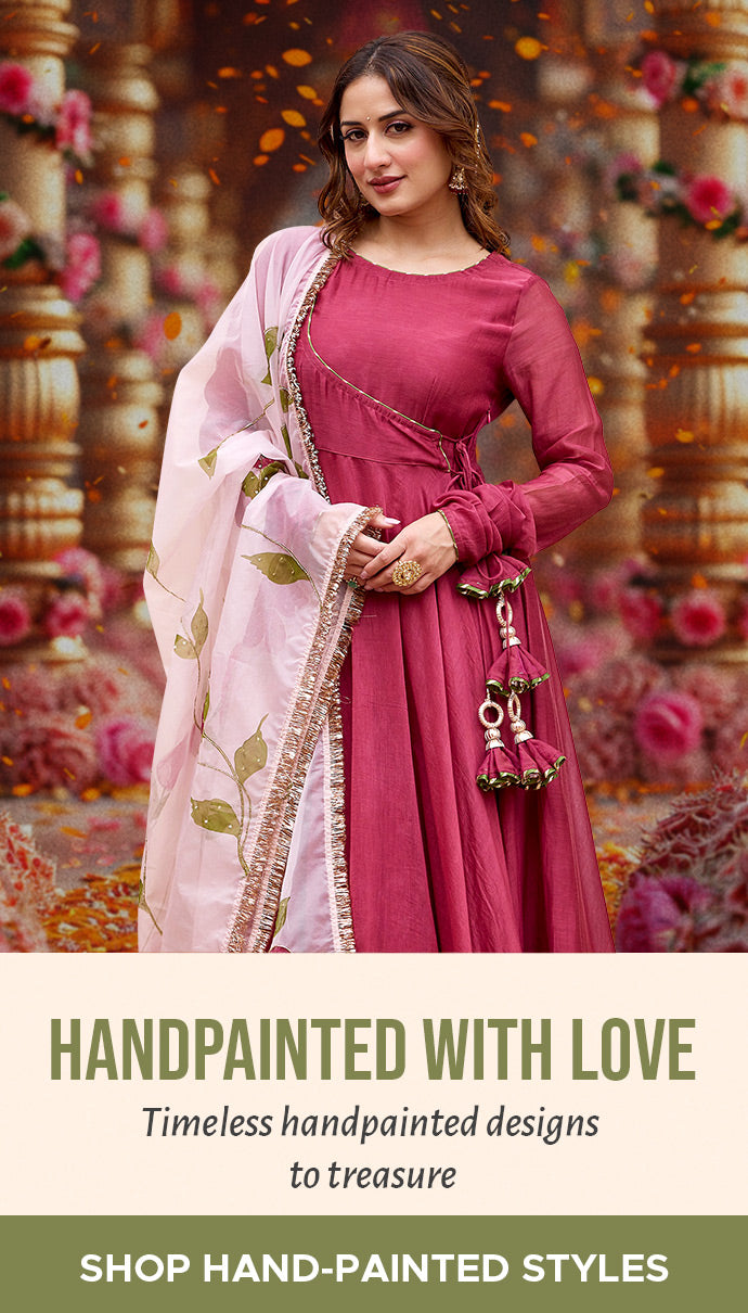 Handpainted detailing is one of the most exquisite ethnic wear trends to watch out for in the modern era. When the unmatched beauty of authentic hand detailing comes alive in breezy fabrics, neither you nor the beholders can resist falling in love with ethnic wear.