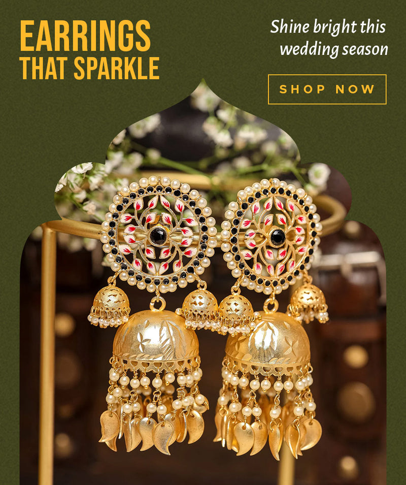 Shop By Jewellery Type: Chaandbali Earrings | Choker Necklace | Drops & Danglers | Hoop Earrings | Jhumka Earrings| Kadas Women | Payal | Rani Haar | Studs Earrings.