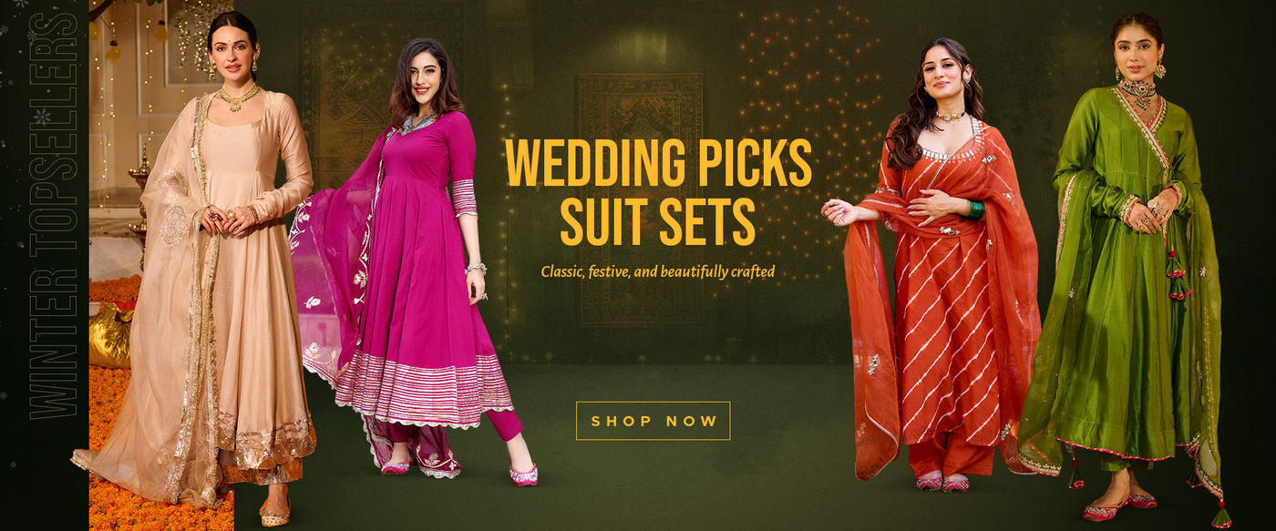 Shop By Fabric: Cotton Suit Sets | Organza Suits Sets | Chiffon Suit Sets | Chanderi Suit Sets | Satin Suit Sets | Silk Suit Sets | Georgette Suits Sets | Mulmul Suit Sets | Rayon Suit Sets | Velvet Suit Sets.