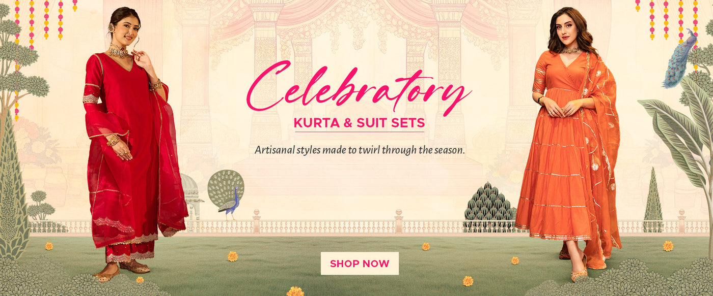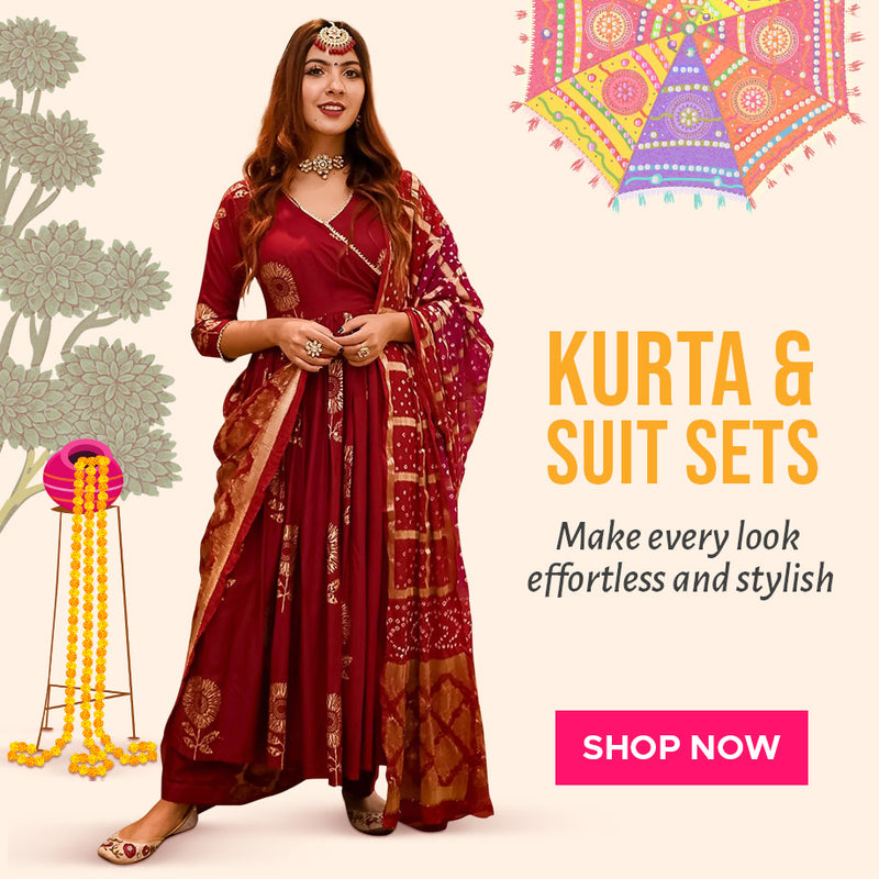 Shop By Prints: Ajrakh Suit Sets | Indigo Suit Sets | Floral Suits Sets | Paisley Suit Sets.