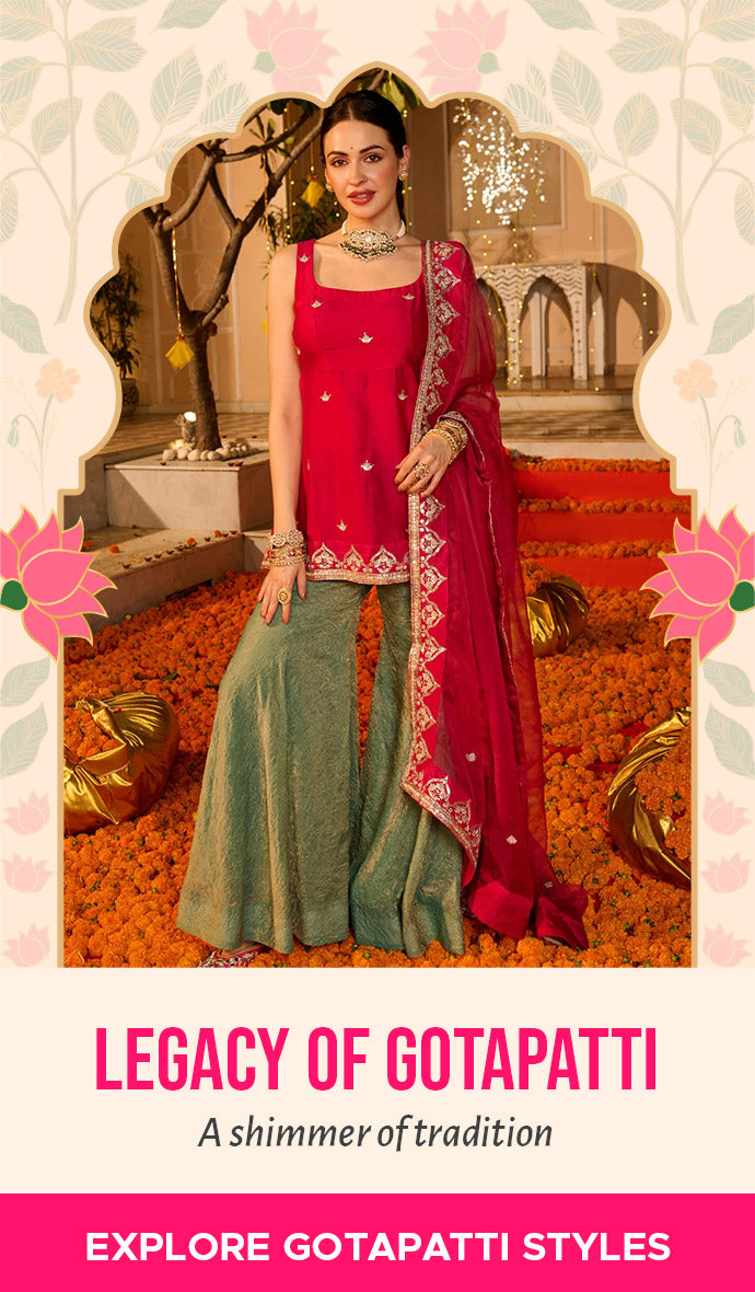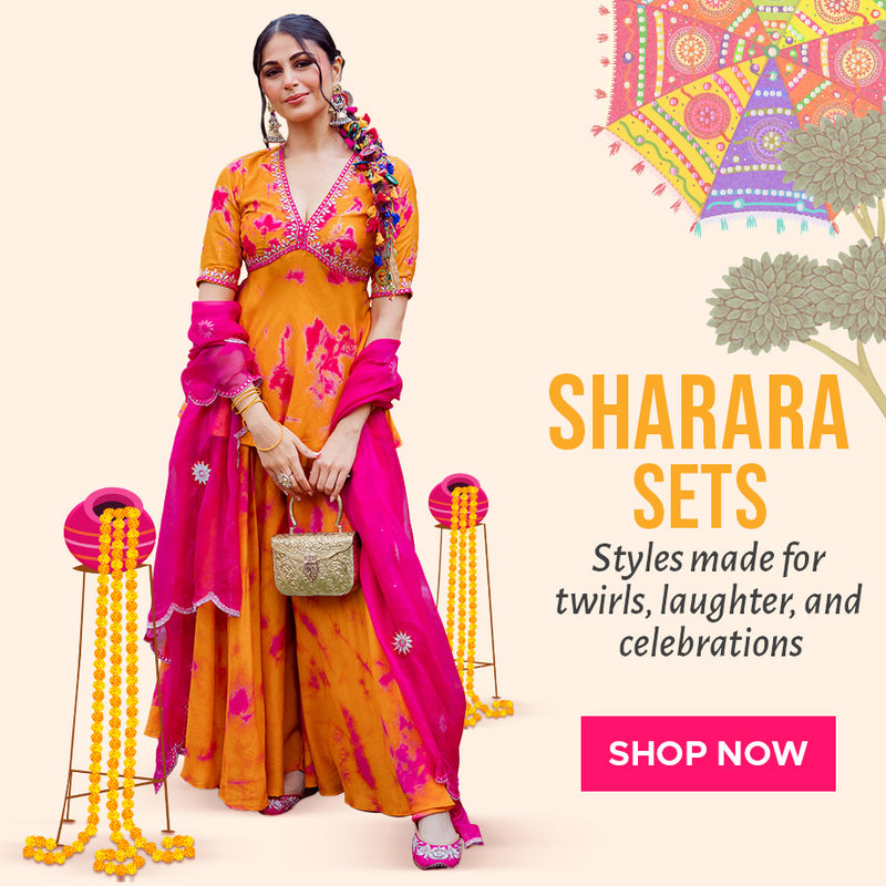 Shop By Pattern: A Line Suit Sets | Umbrella Suit Sets | Gharara Suit Sets | Kalidaar Suit Sets | Sleeveless Suit Sets | Straight Suit Sets | Angarakha Suit Sets | Asymmteric Suit Sets.