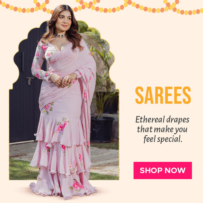 Saree is amongst the most gracious ethnic ensembles of India and if your love for saree knows no bounds then take a glance at our stunning ethnic saree collection from our ethnic wear for women category featuring sarees that are classic yet have modernistic appeal. Especially, if you are fond of minimalist sarees embracing subtle embroidery detailing then Aachho is the go-to ethnic wear online destination for you to explore sarees.