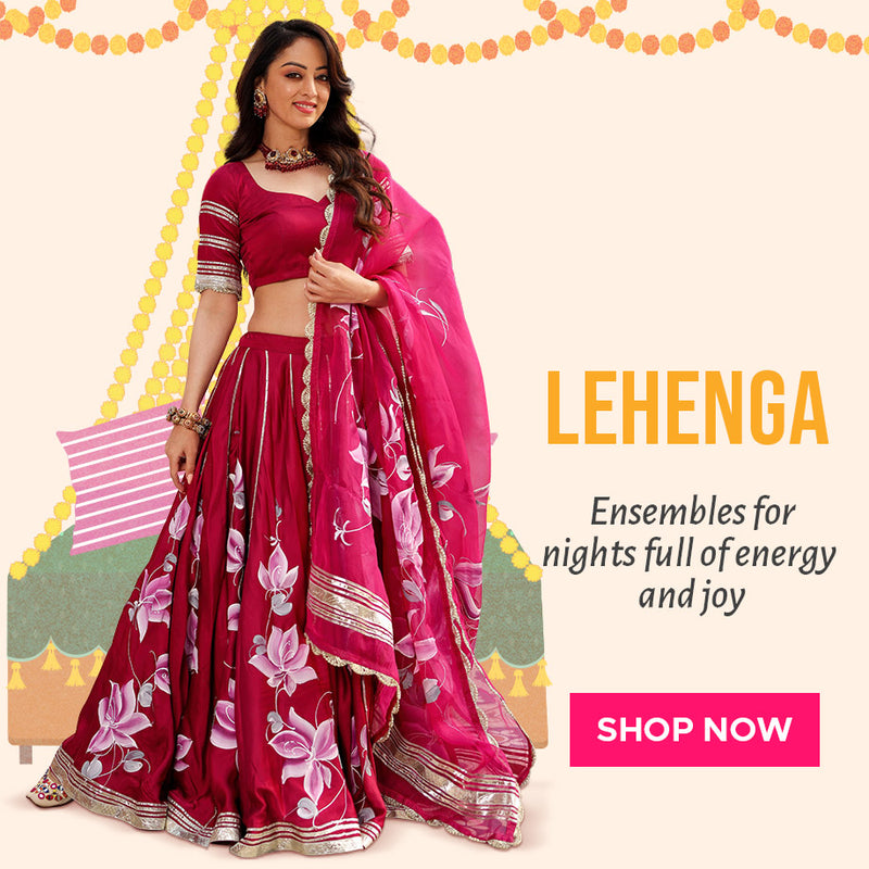 Shop By Fabric: Satin Lehenga | Organza Lehenga | Chanderi Lehenga.