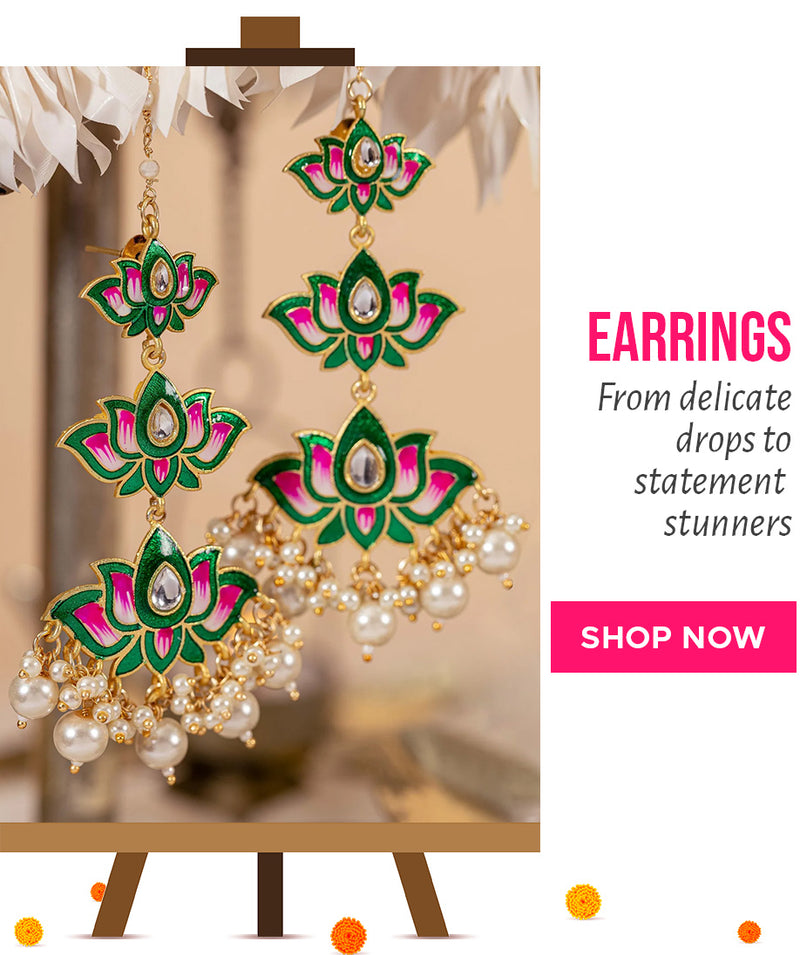 Shop By Jewellery Type: Chaandbali Earrings | Choker Necklace | Drops & Danglers | Hoop Earrings | Jhumka Earrings| Kadas Women | Payal | Rani Haar | Studs Earrings.