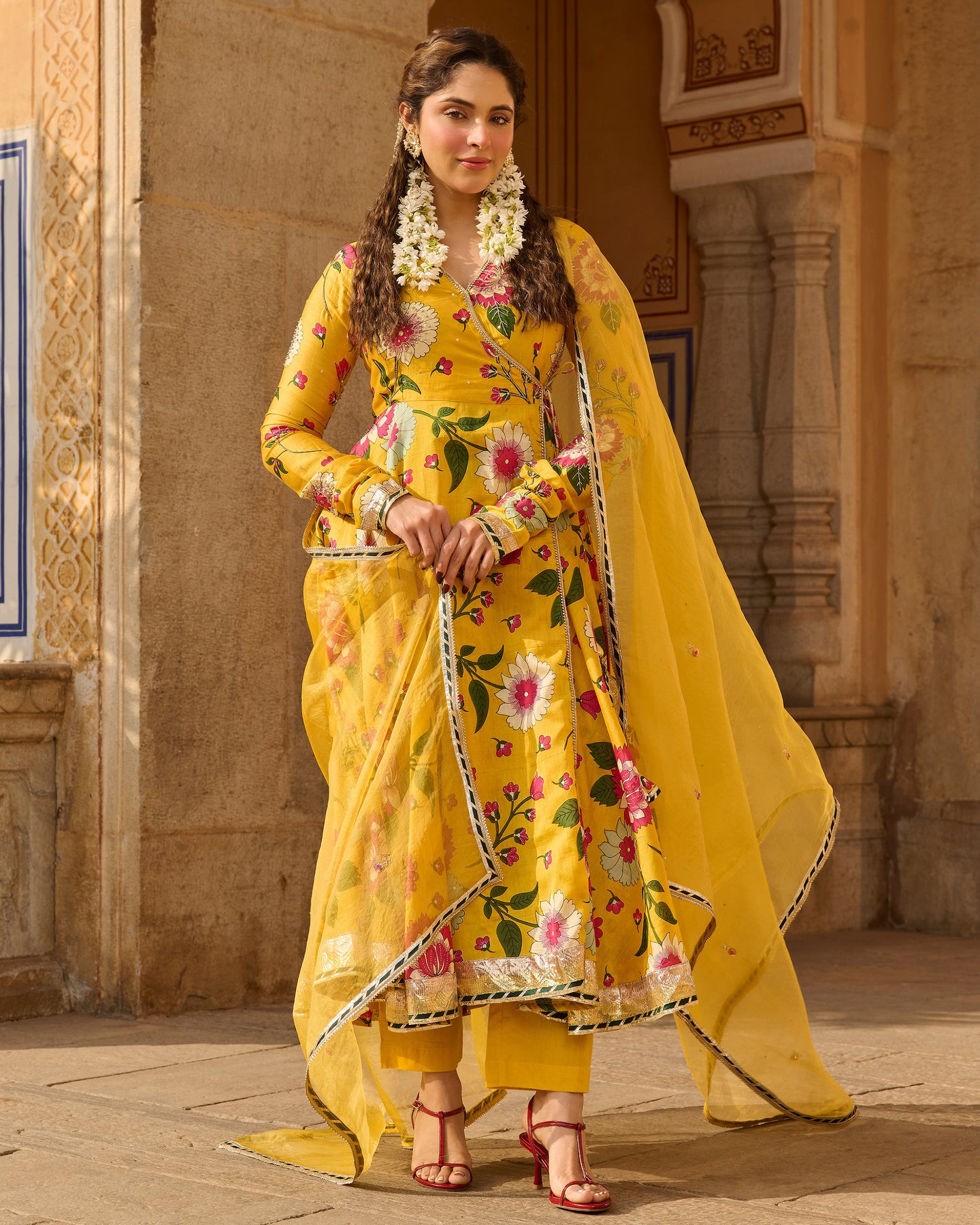 Iltija Yellow Printed Chanderi Suit Set