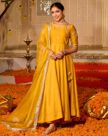 Noorani Yellow Solid Chanderi Suit Set