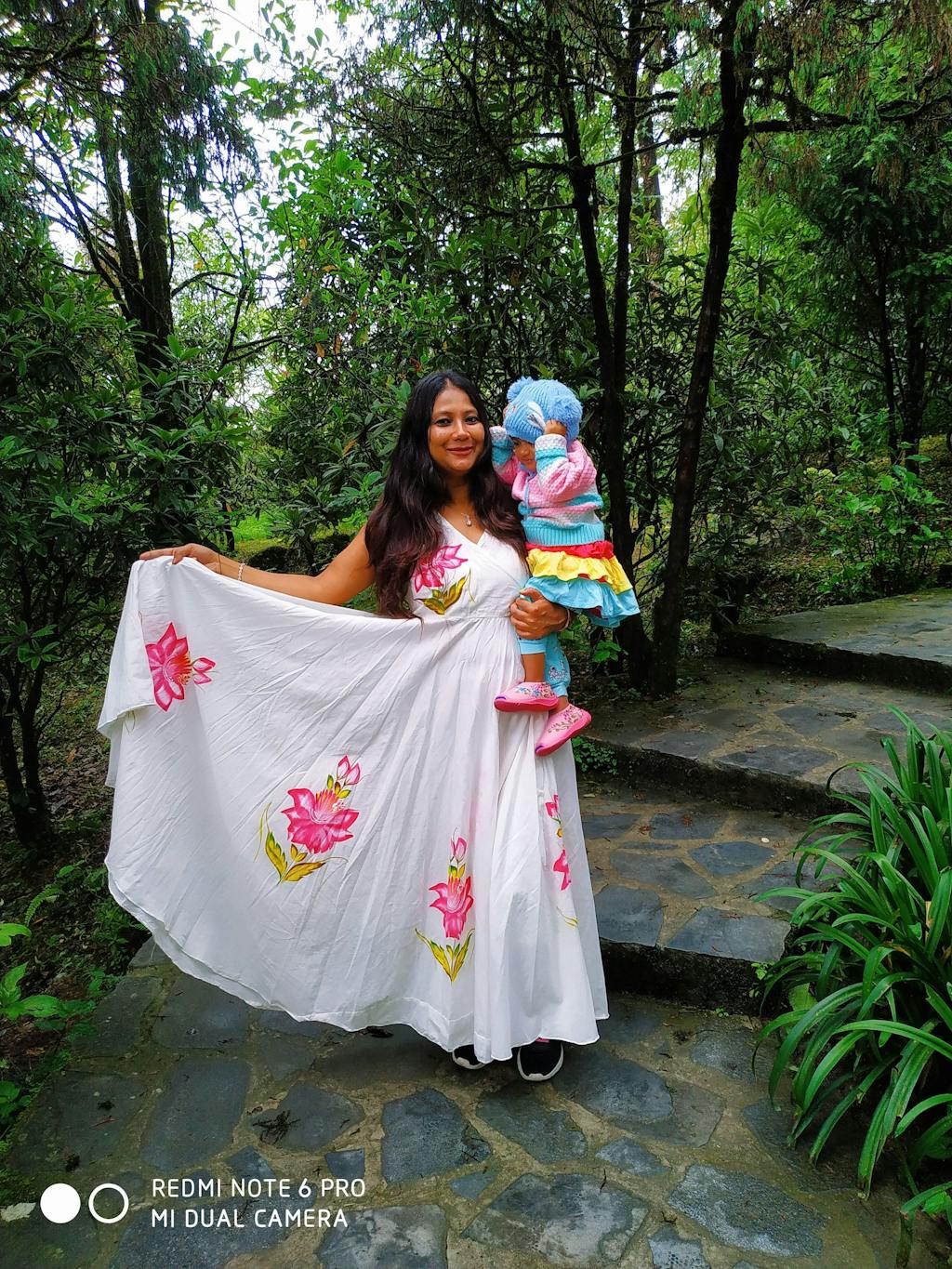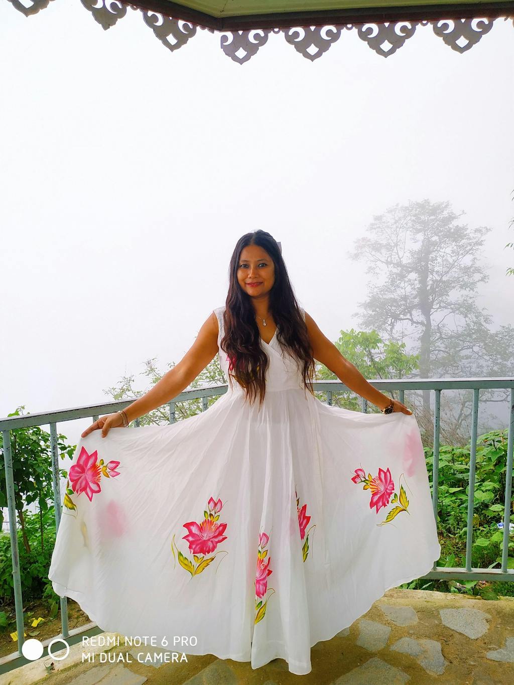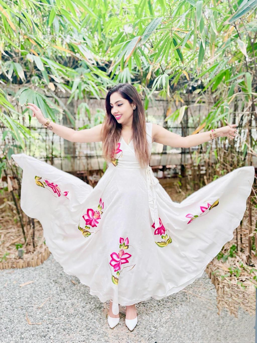 WHITE Cotton HANDPAINTED DRESS .