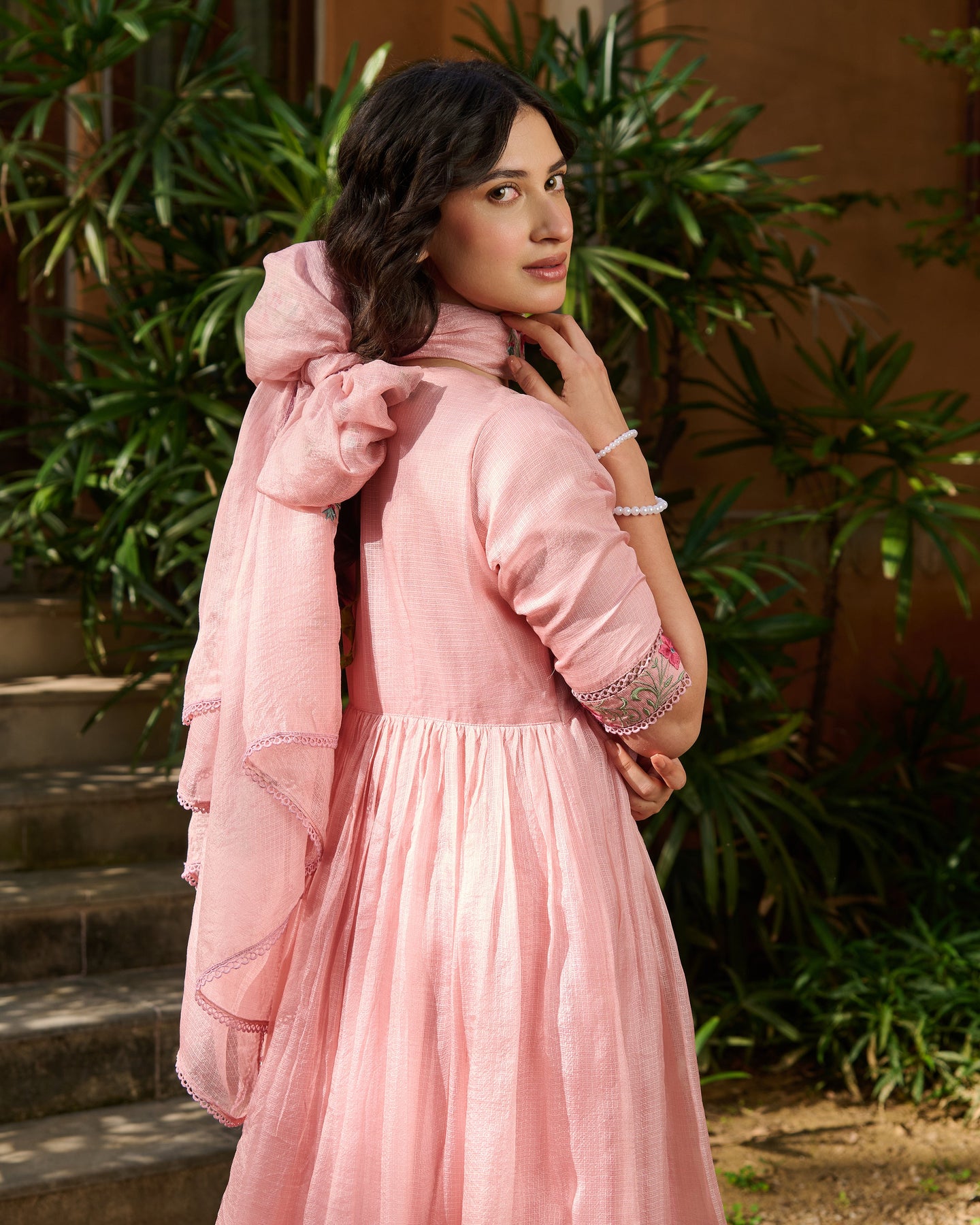 Razzle Pink Embroidered Tabby Silk Lehenga Set