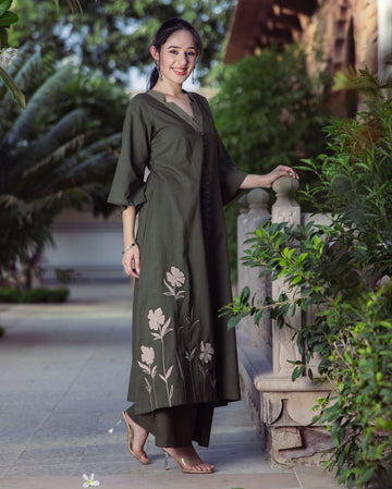 Forest Green Embroidered Cotton Kurta Set
