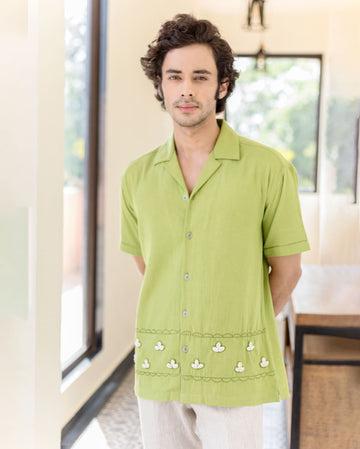 Gage Green Embroidered Flex Solid Shirt