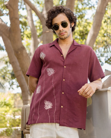 Logan Brown Embroidered Slub Shirt