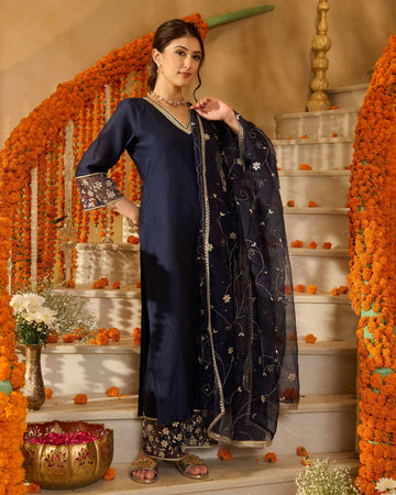 Lumi Blue Solid Chanderi Suit Set
