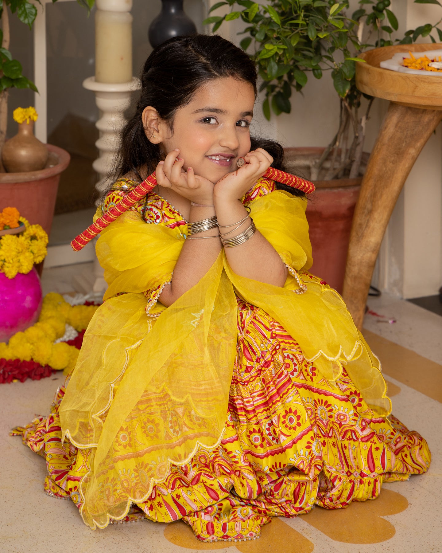 Hipsa Yellow Printed Chanderi Lehenga Set