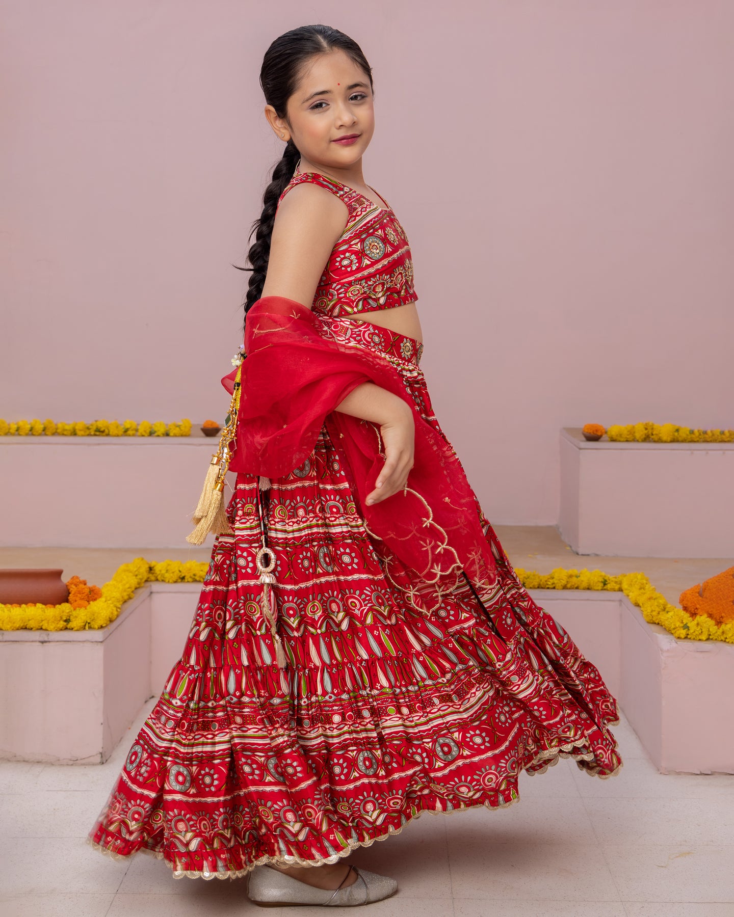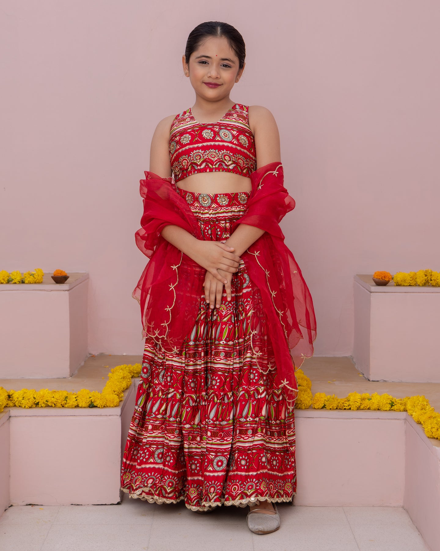 Dewberry Pink Handpainted Chanderi Lehenga Set
