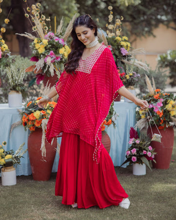 Chahat Red Leheriya Georgette Coord Set
