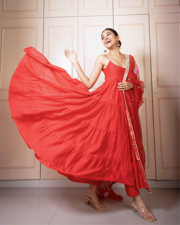 "I'm absolutely in love with this dress from Aachho .The vibrant color is stunning, and the intricate design is truly eye-catching. The combination of both makes this dress a showstopper. Perfect for any occasion, it's a must-have in your wardrobe!"