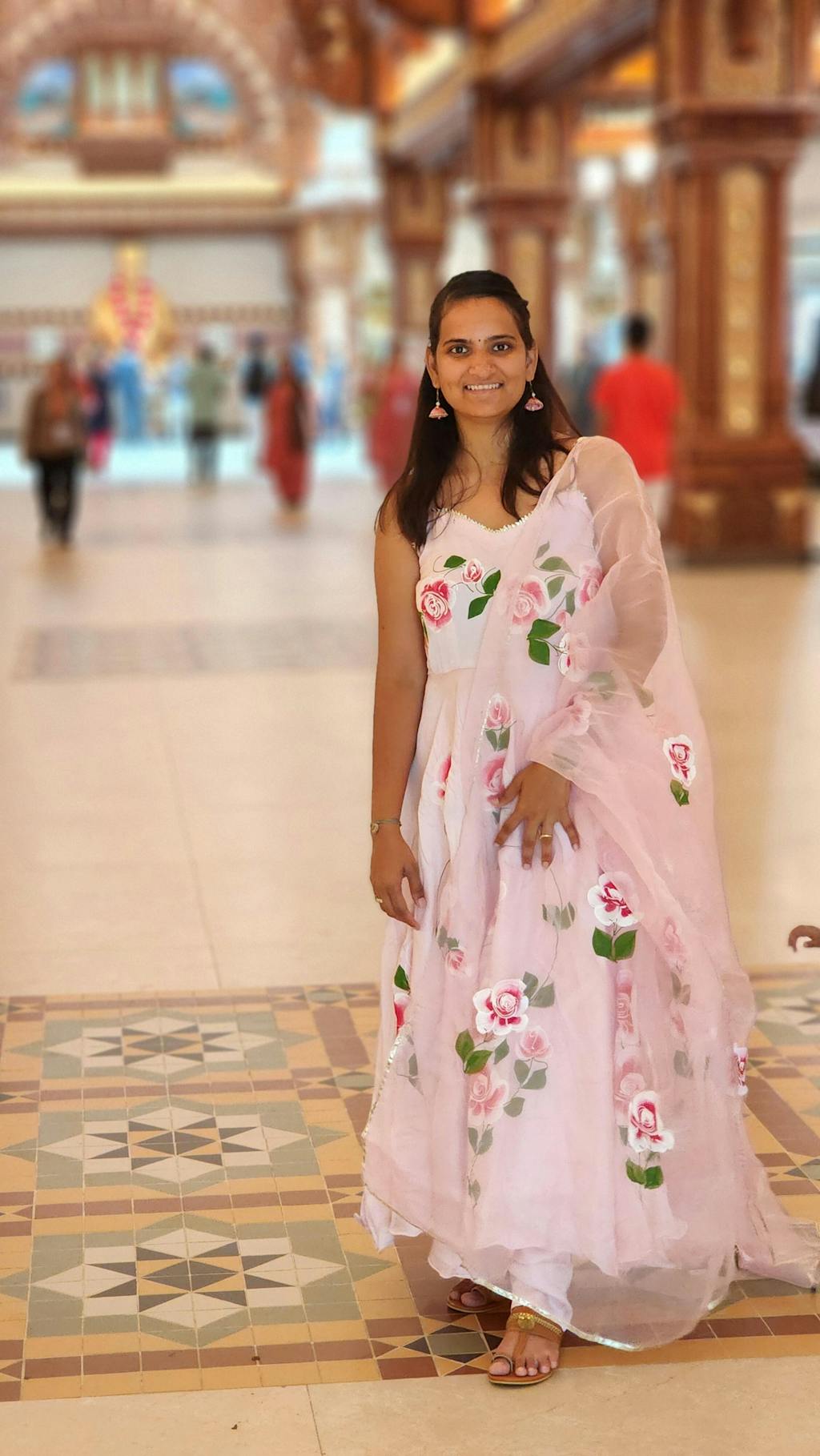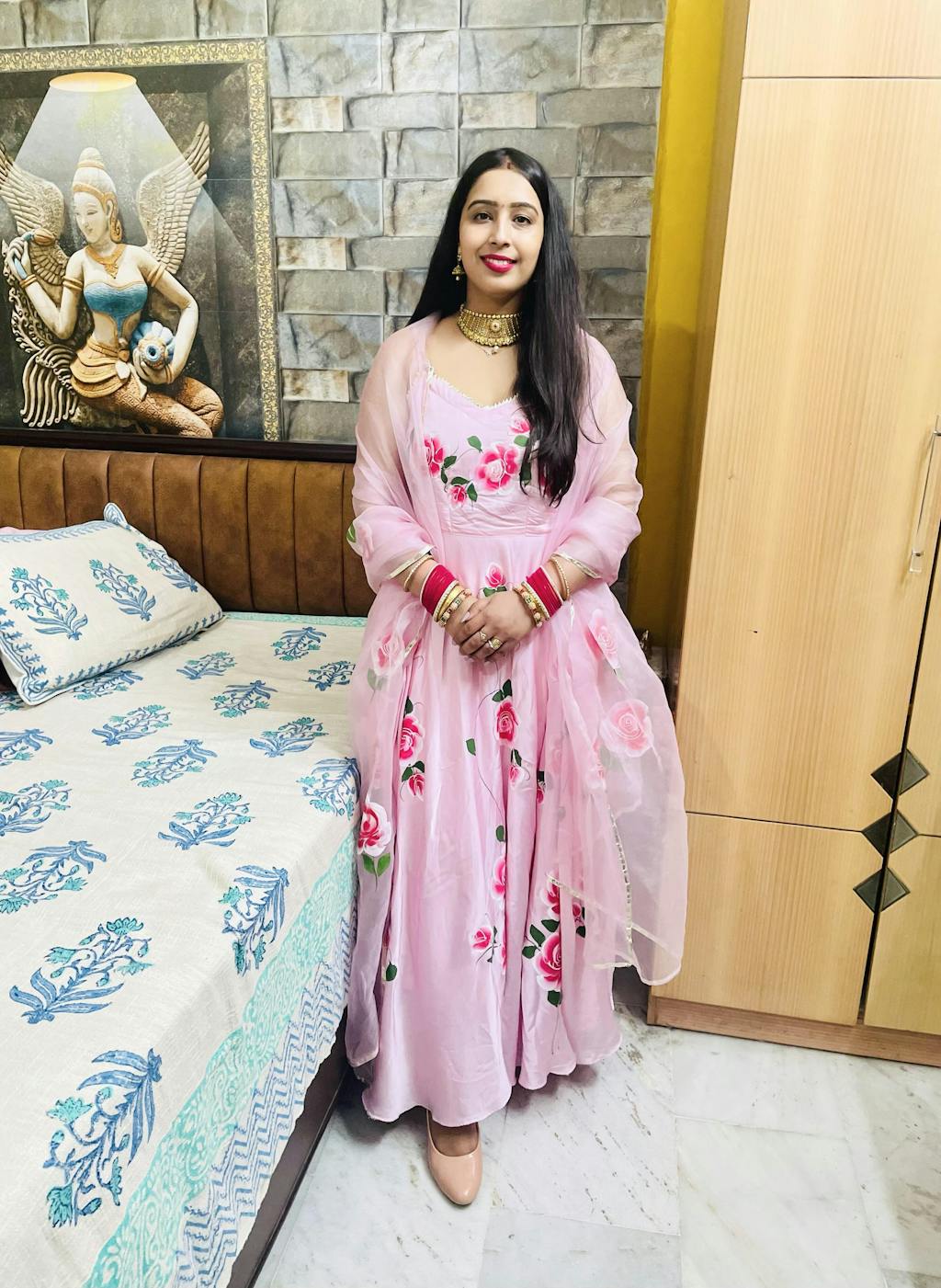 "I'm absolutely in love with this dress from Aachho .The vibrant color is stunning, and the intricate design is truly eye-catching. The combination of both makes this dress a showstopper. Perfect for any occasion, it's a must-have in your wardrobe!"