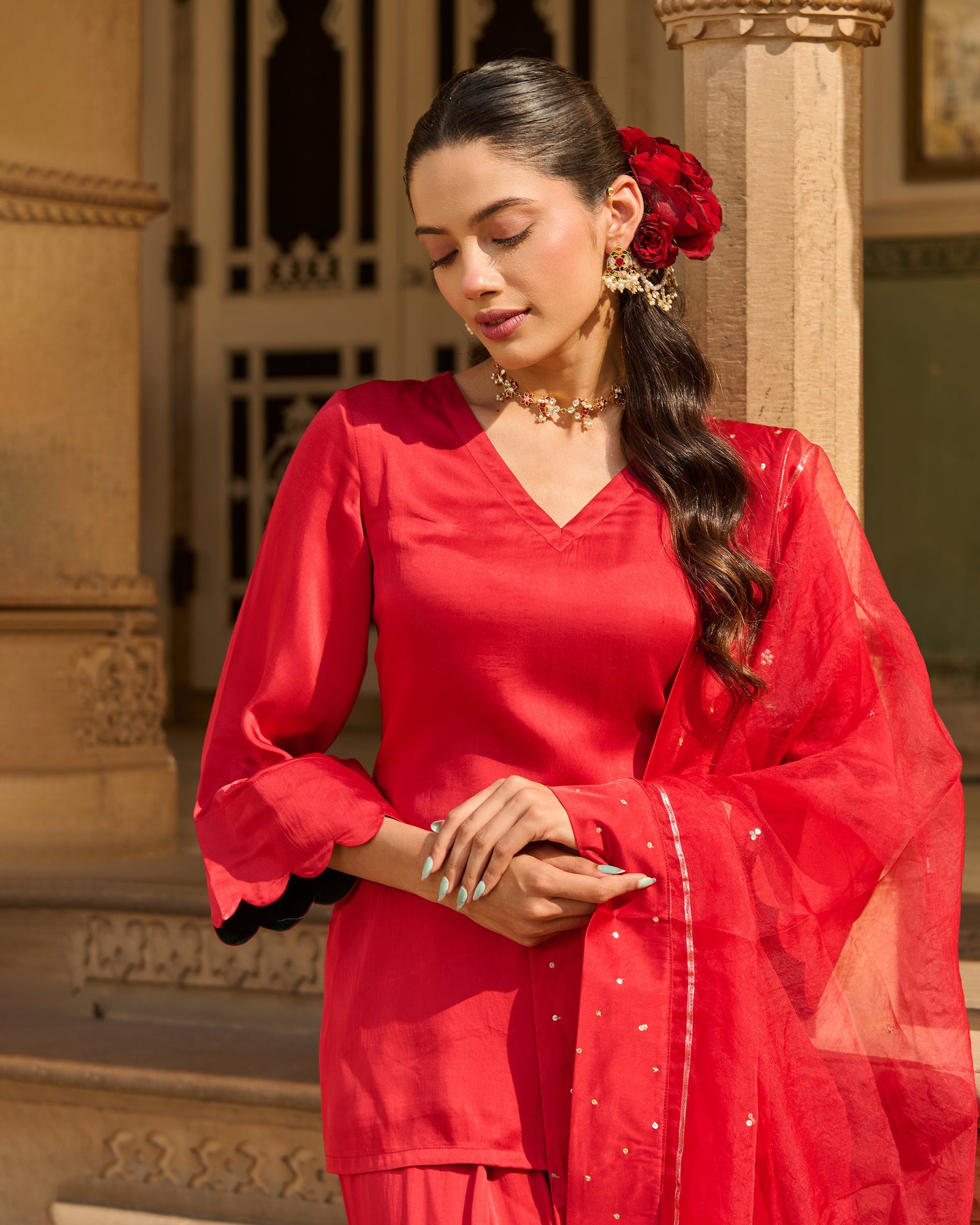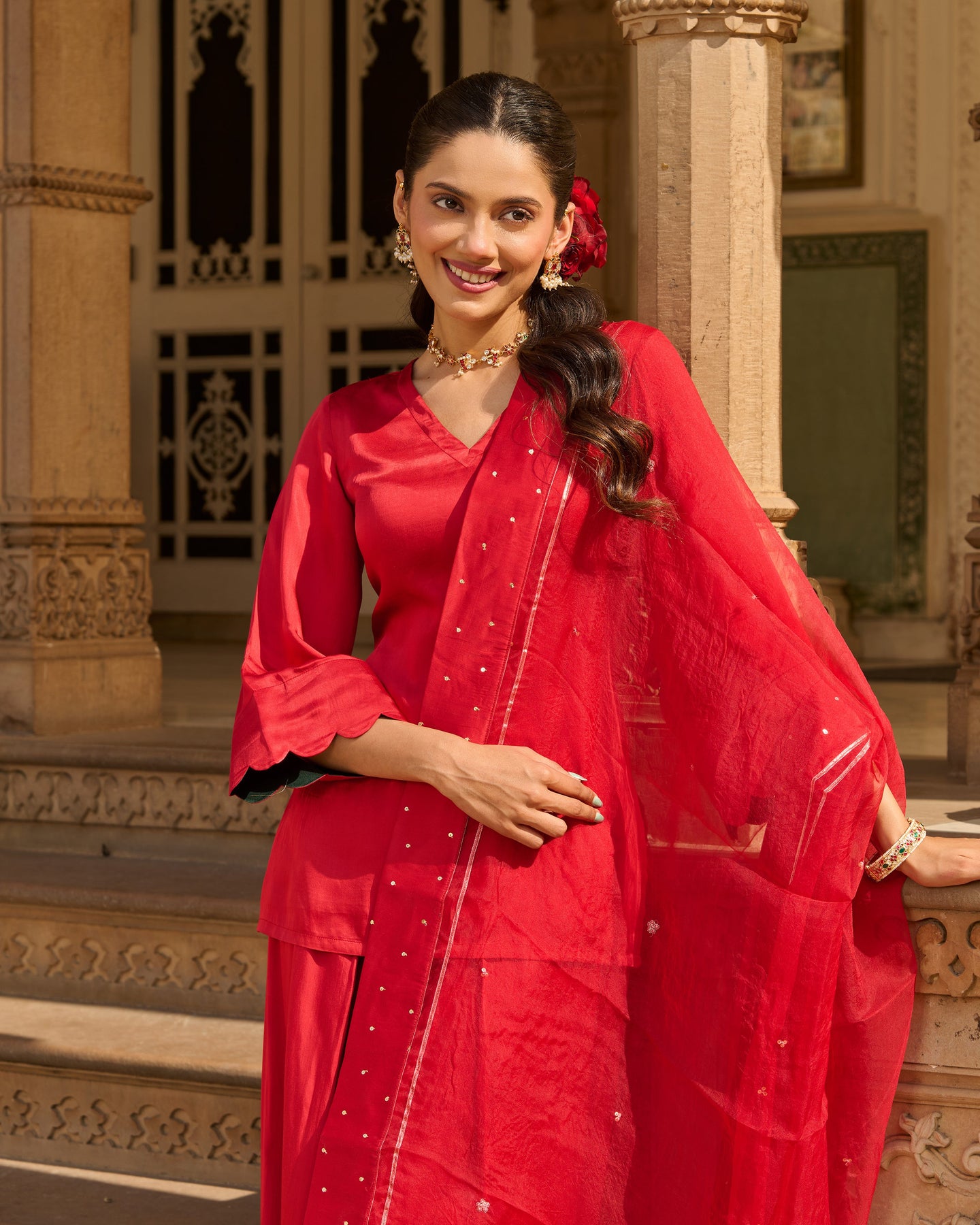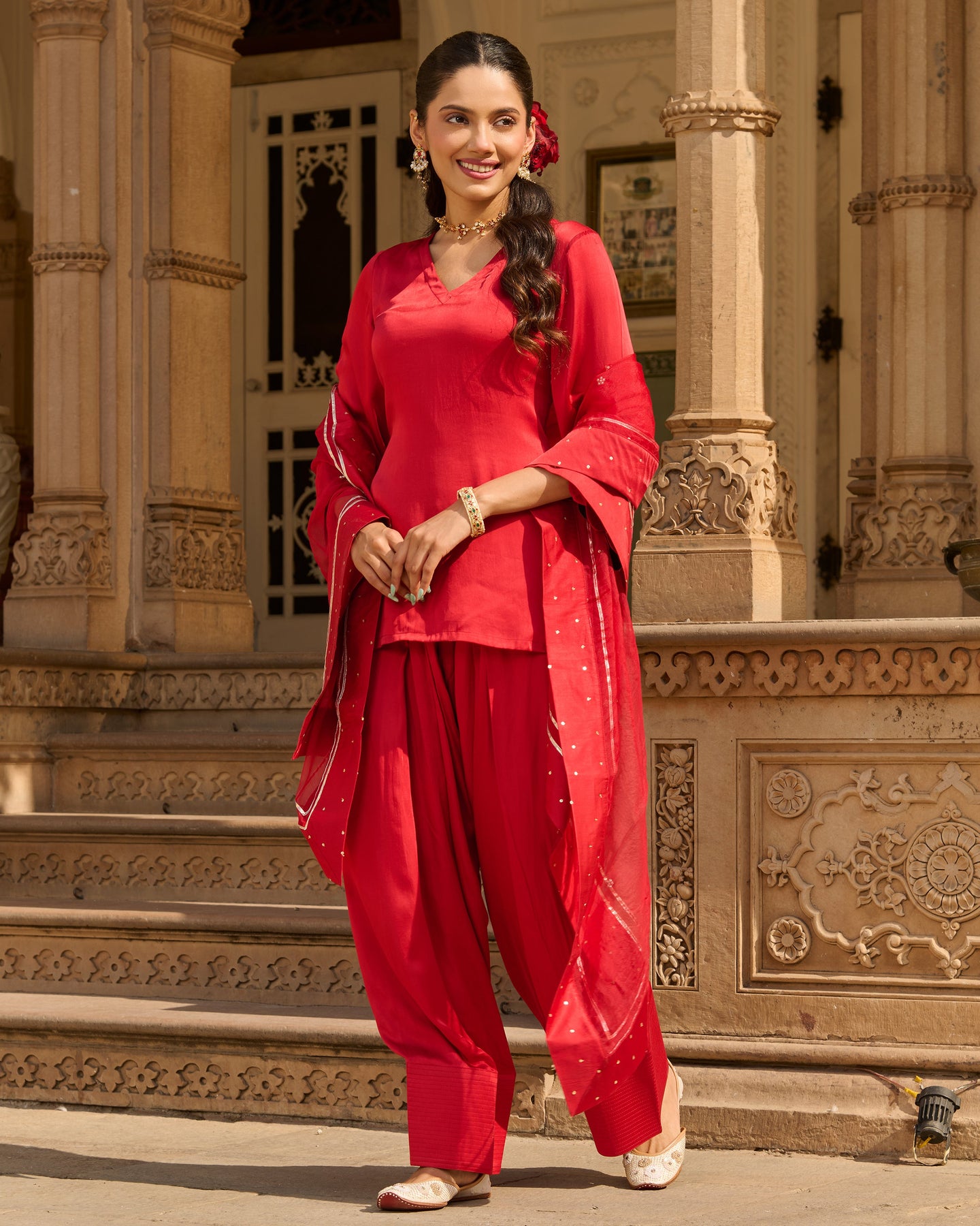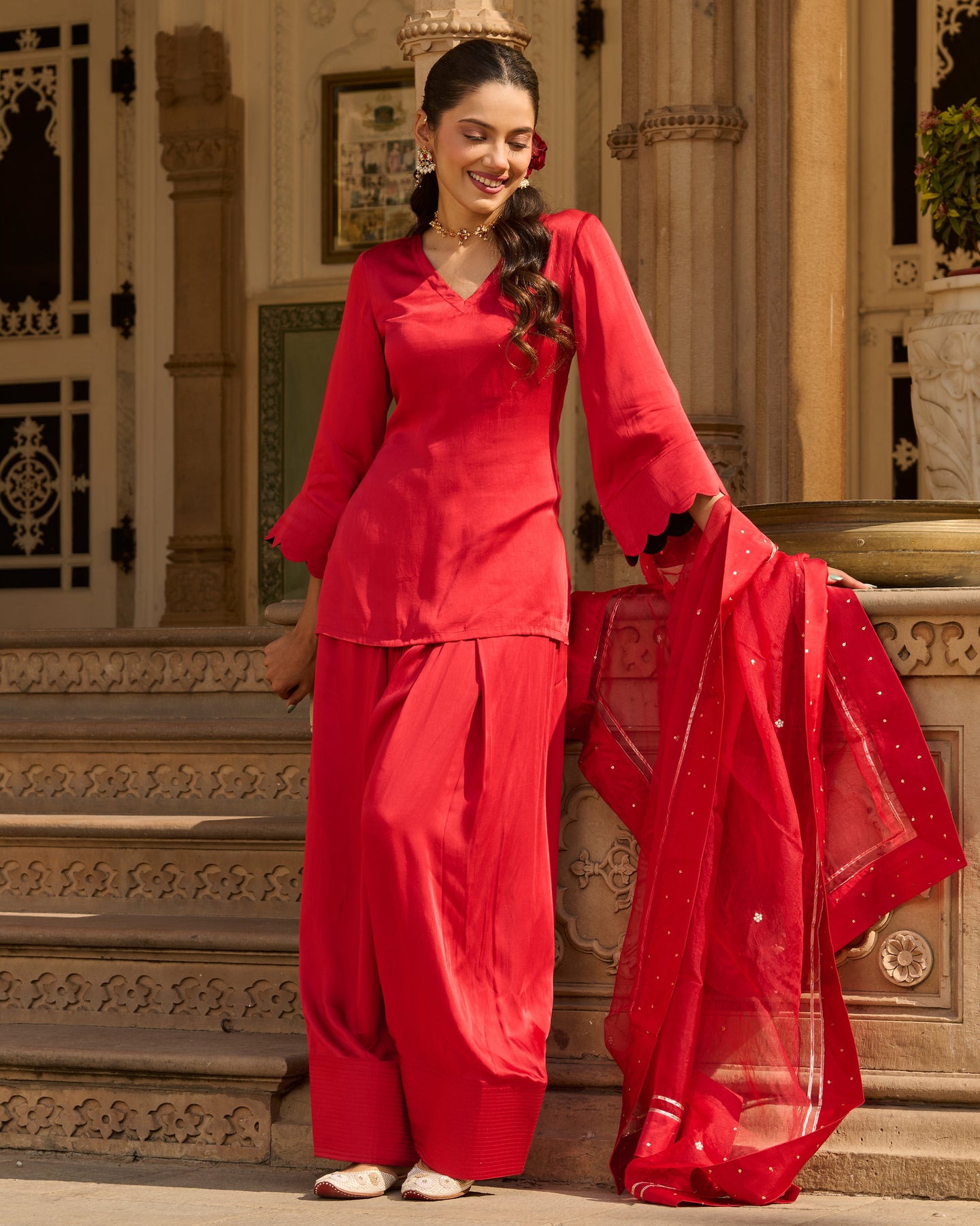 Flux Red Solid Satin Farsi Salwar Set