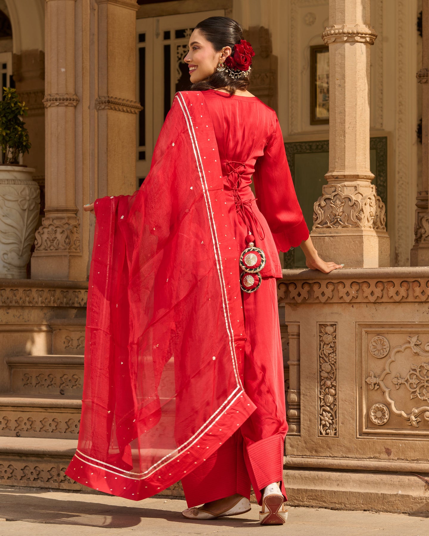 Its beautiful! . Creative. Bottom looks like rose petals near floor. Blouse is totally adjustable along with unique back. Diwali Dream Outfit Came true. However, I wish chunni was of cotton. ORDER atleast one size up.