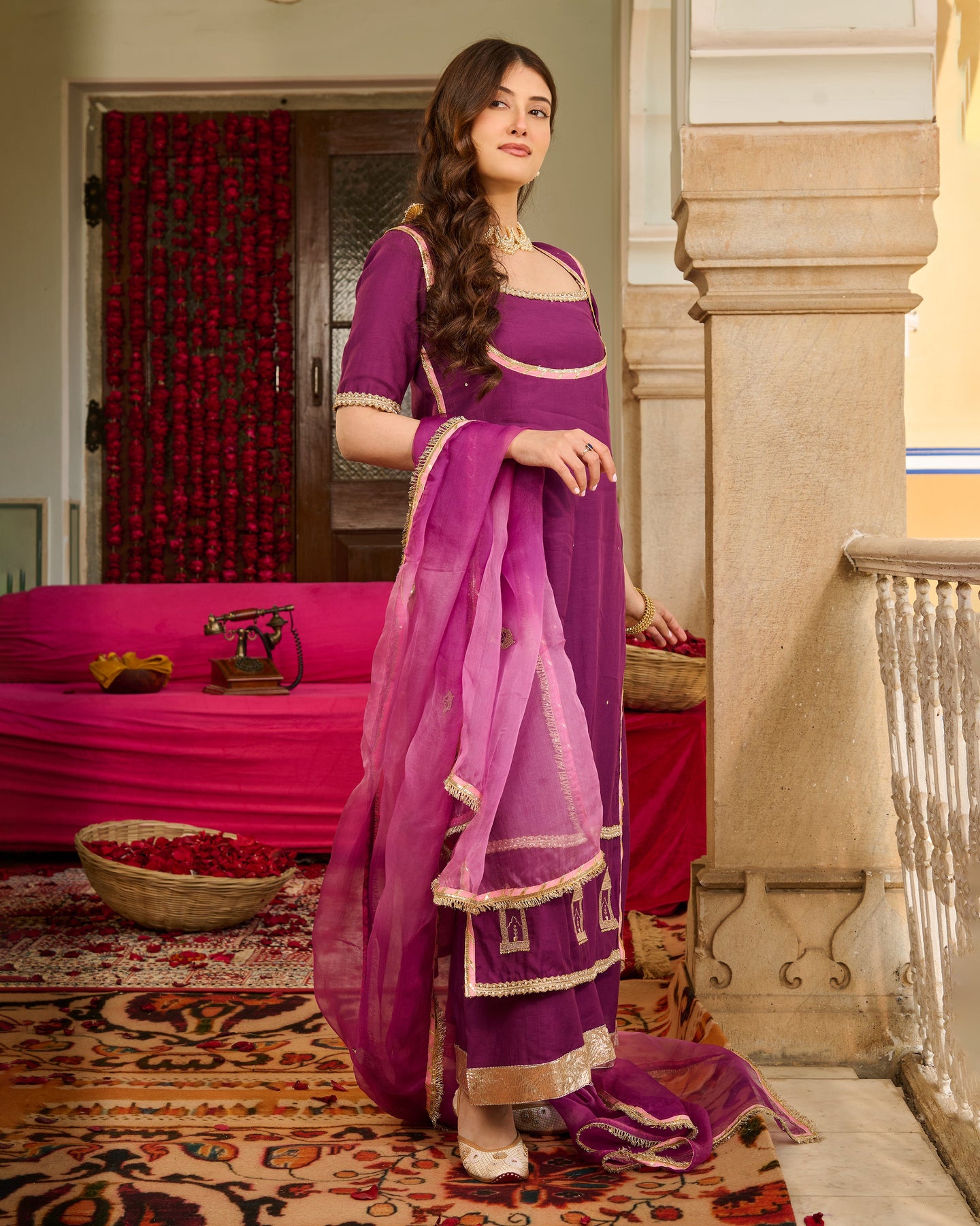Razzle Pink Embroidered Tabby Silk Lehenga Set