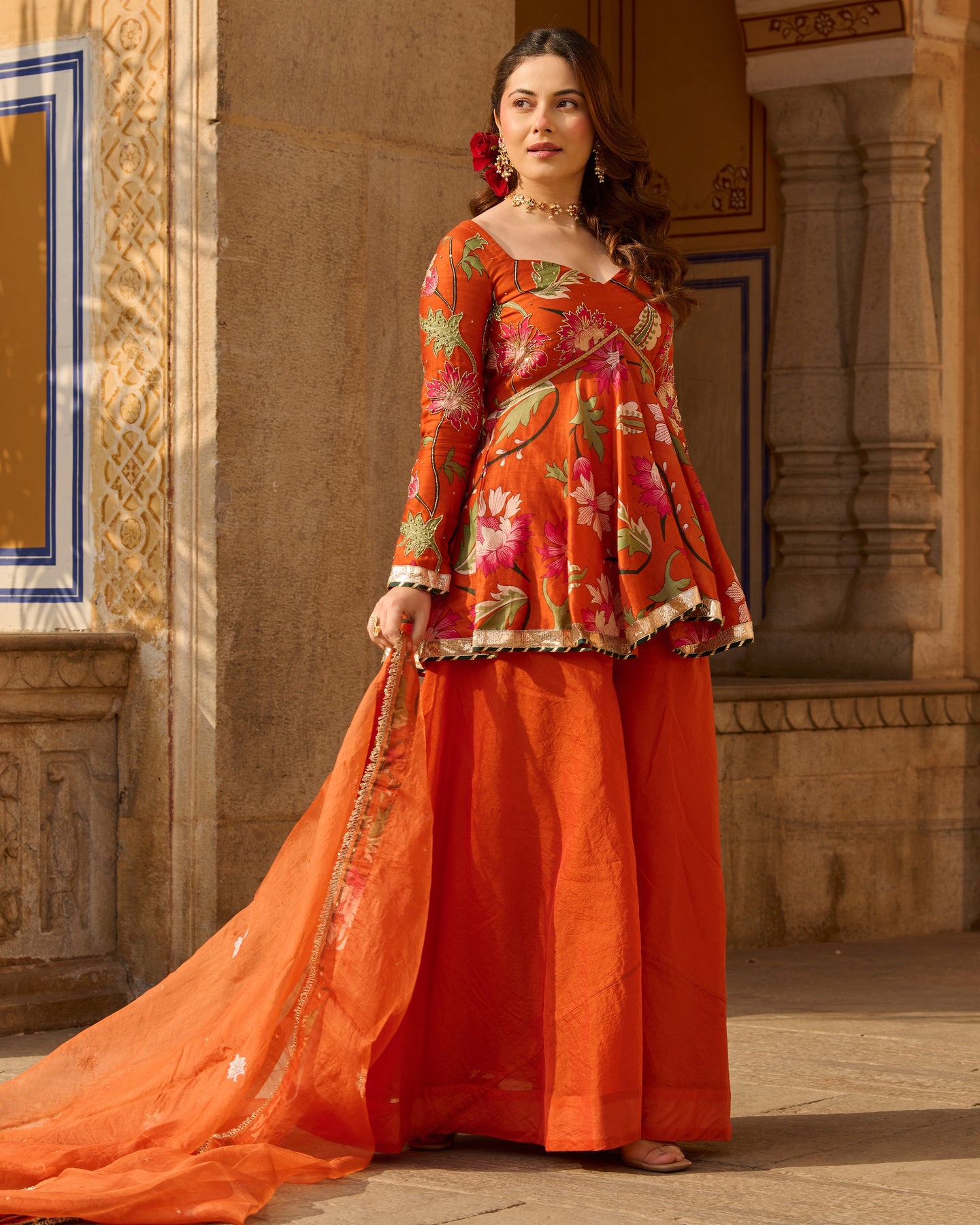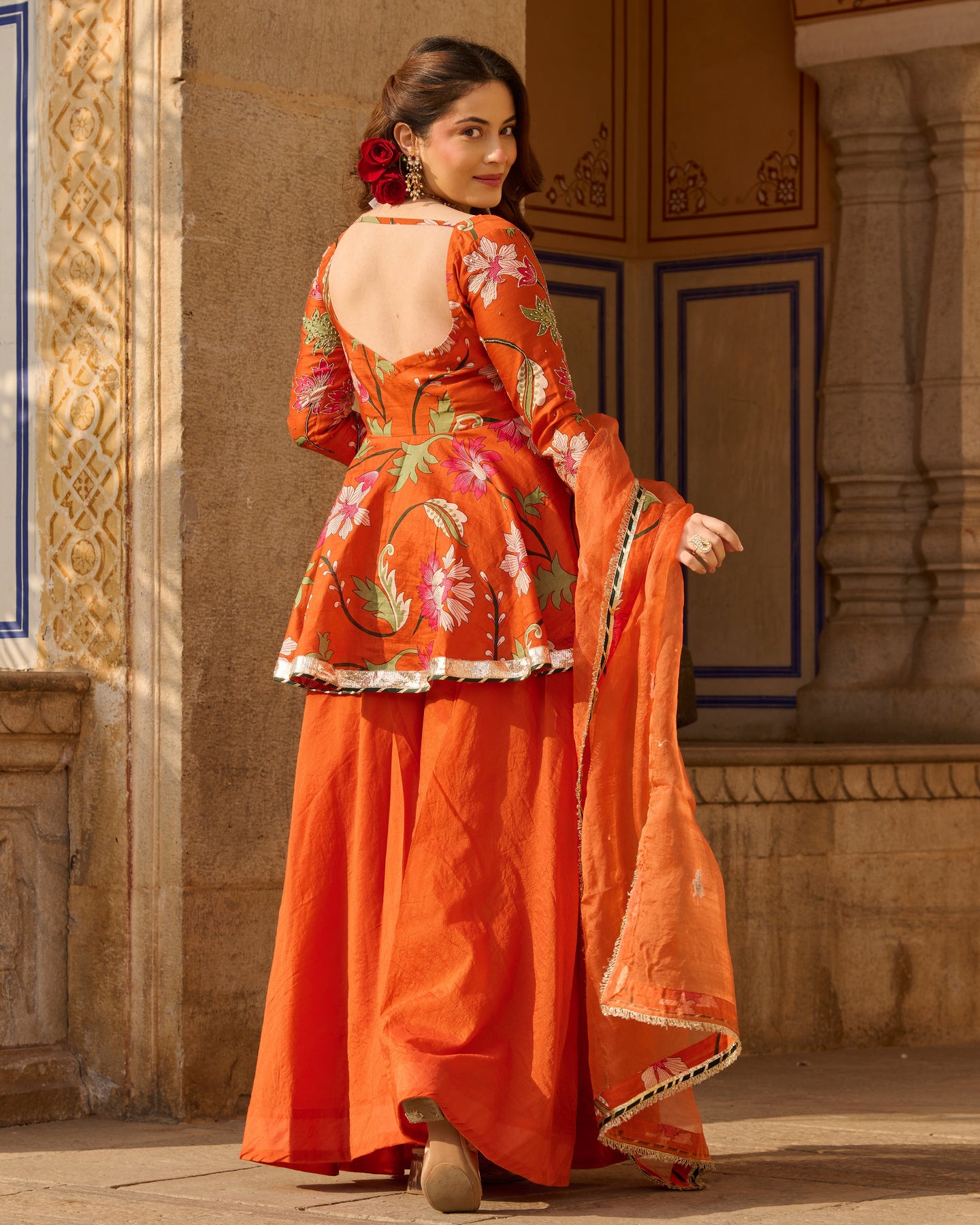 Its beautiful! . Creative. Bottom looks like rose petals near floor. Blouse is totally adjustable along with unique back. Diwali Dream Outfit Came true. However, I wish chunni was of cotton. ORDER atleast one size up.