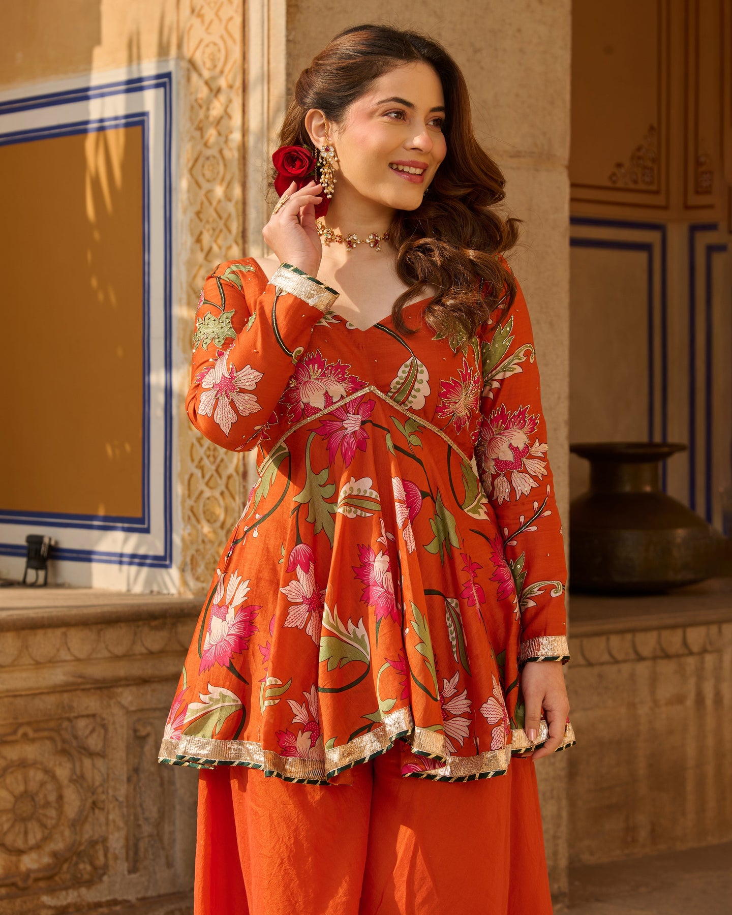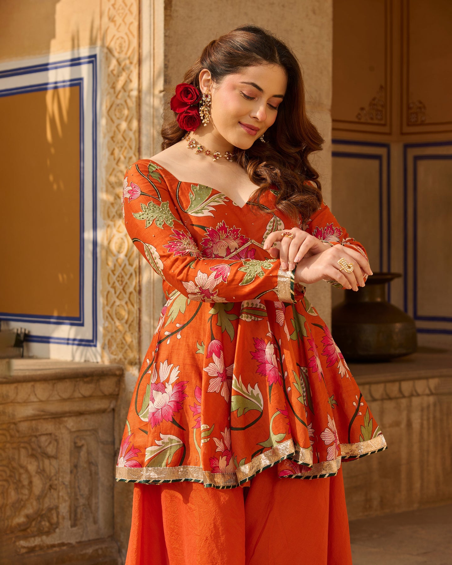 "I'm absolutely in love with this dress from Aachho .The vibrant color is stunning, and the intricate design is truly eye-catching. The combination of both makes this dress a showstopper. Perfect for any occasion, it's a must-have in your wardrobe!"