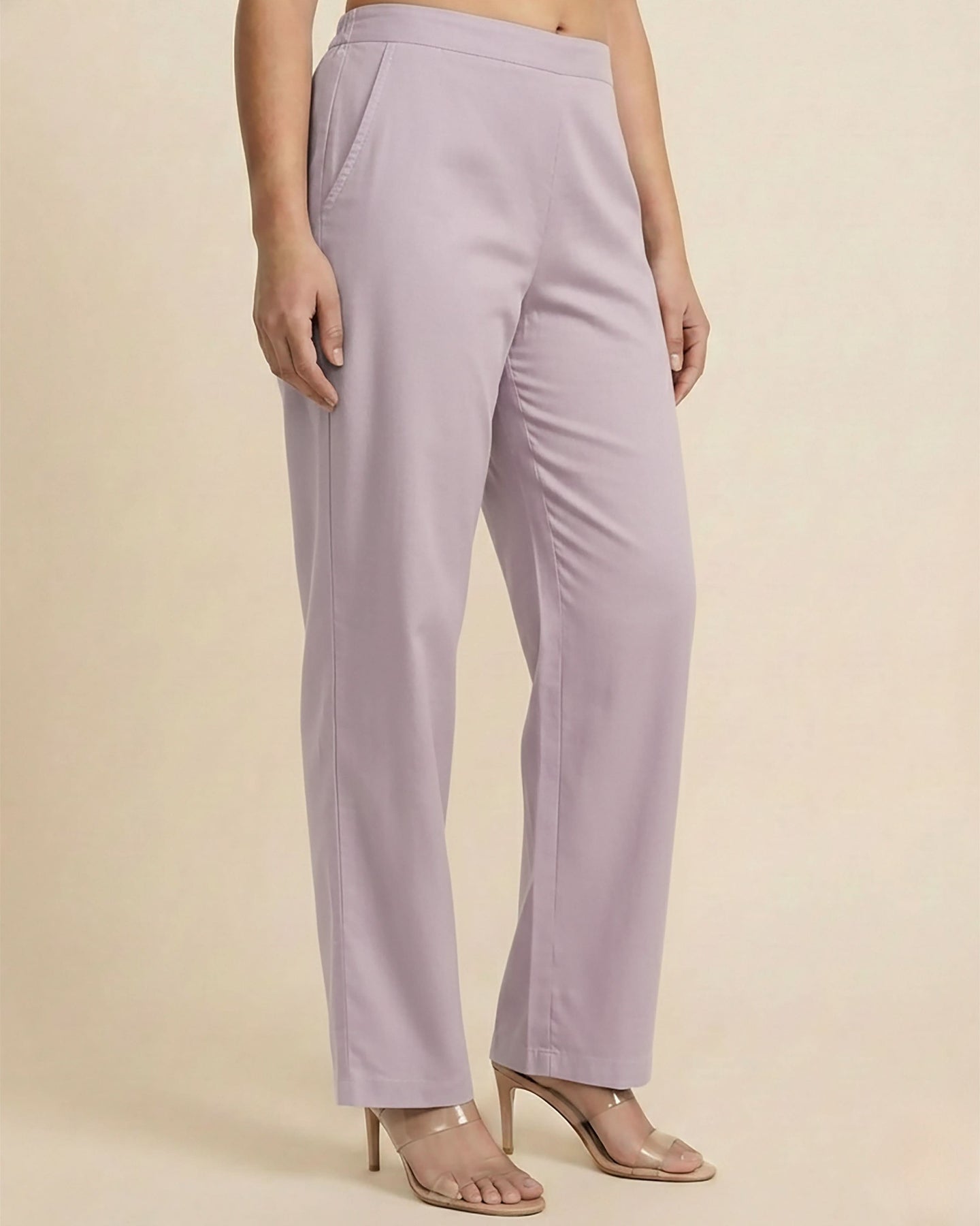 Mia Lilac Cotton Solid Straight Pants