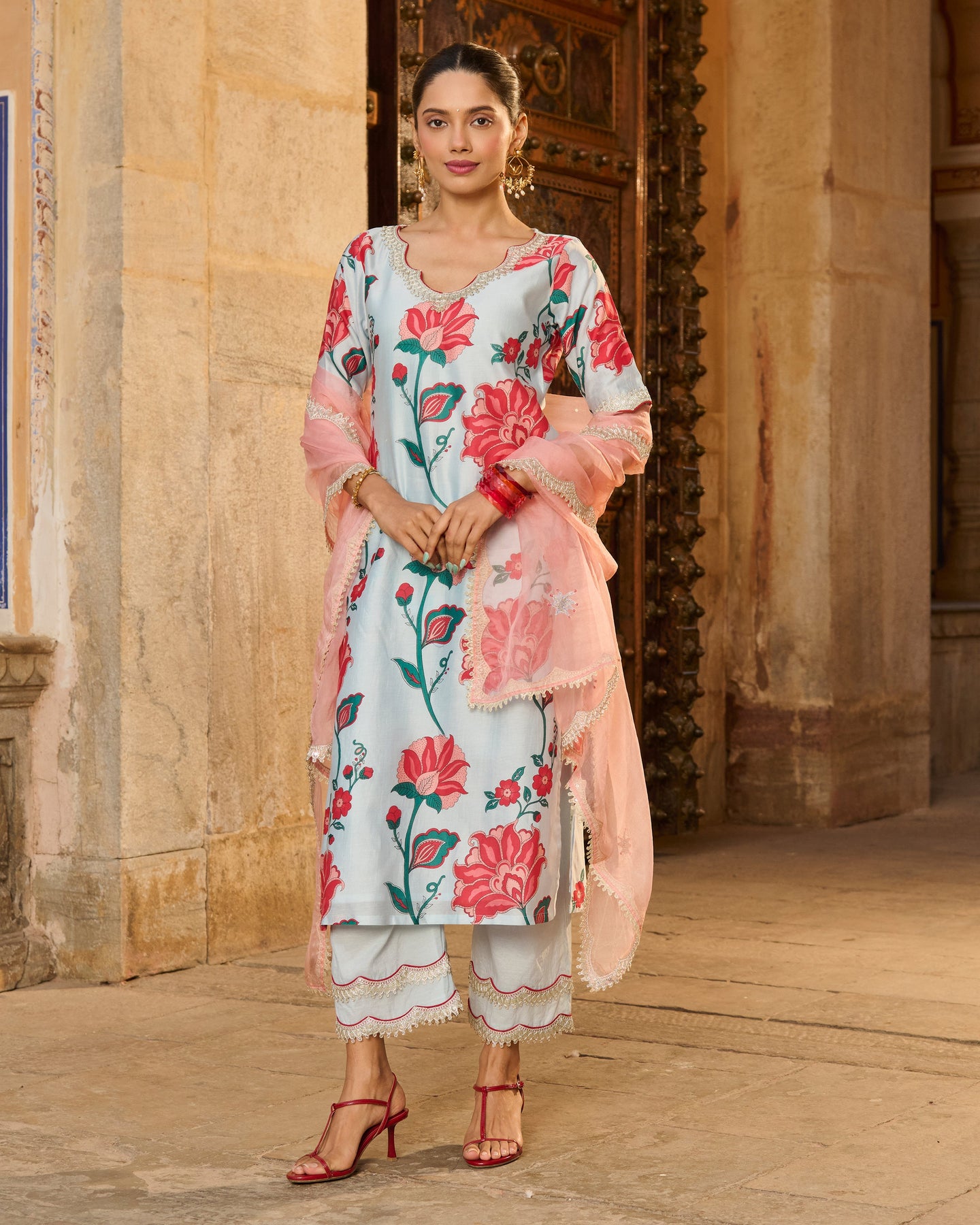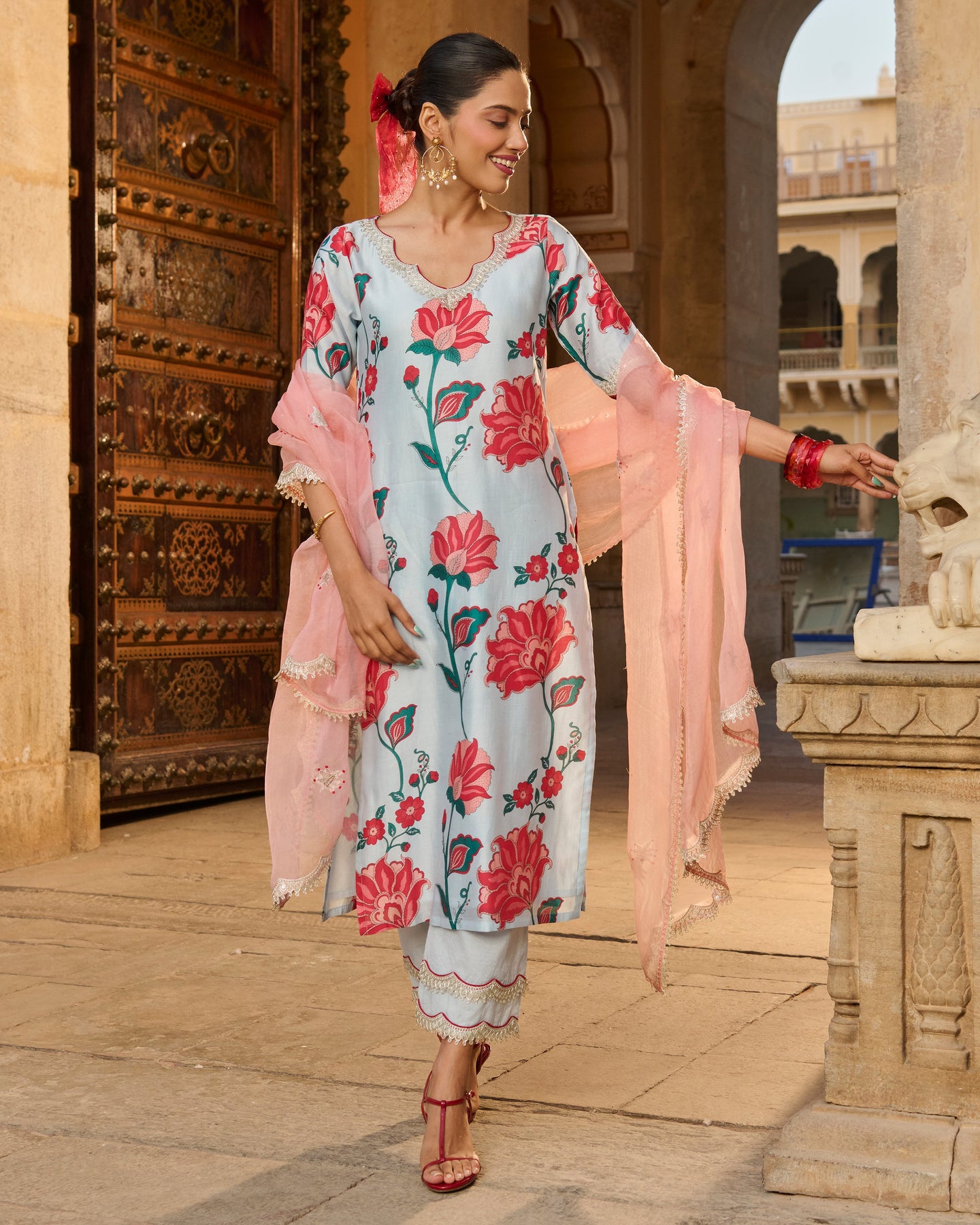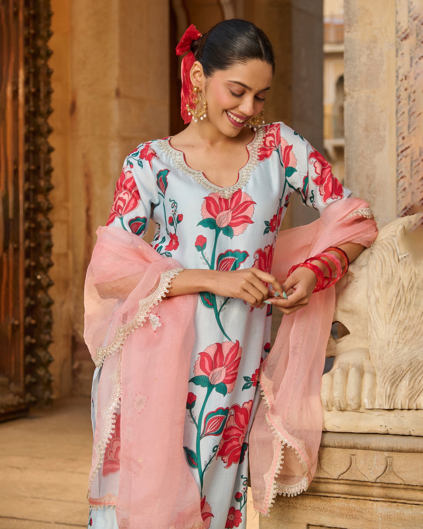 Tarang Pastel Blue Bandhani Silk Suit Set