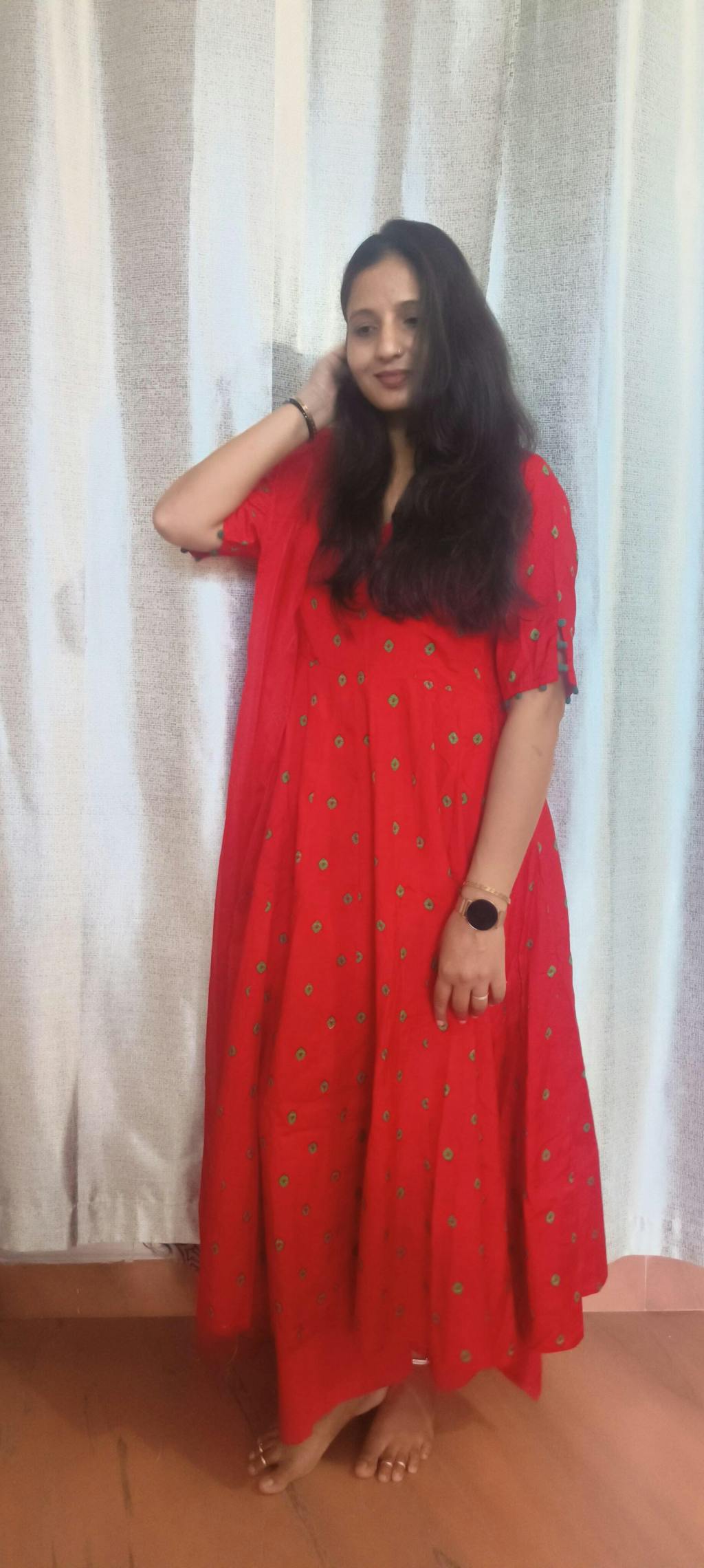 "I'm absolutely in love with this dress from Aachho .The vibrant color is stunning, and the intricate design is truly eye-catching. The combination of both makes this dress a showstopper. Perfect for any occasion, it's a must-have in your wardrobe!"