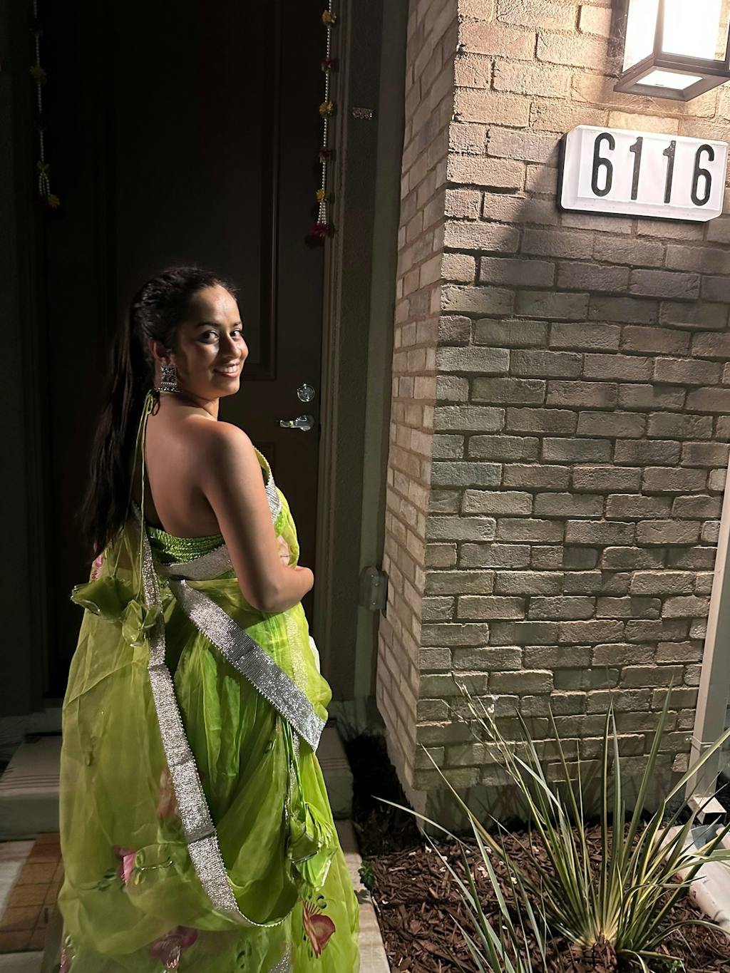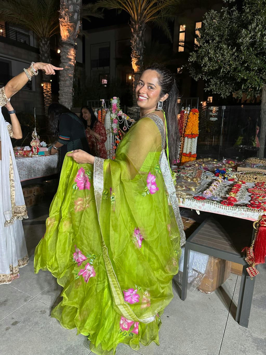Drape yourself in the captivating charm of our Jhuhi Handpainted Organza Lehenga Set featuring a serene hue of green. With its alluring halter neck blouse design, this ensemble is the perfect choice for weddings, festivals, and all your special occasions that will make you shine like a radiant star, leaving a lasting impression that lingers in the hearts of all who witness your grace.