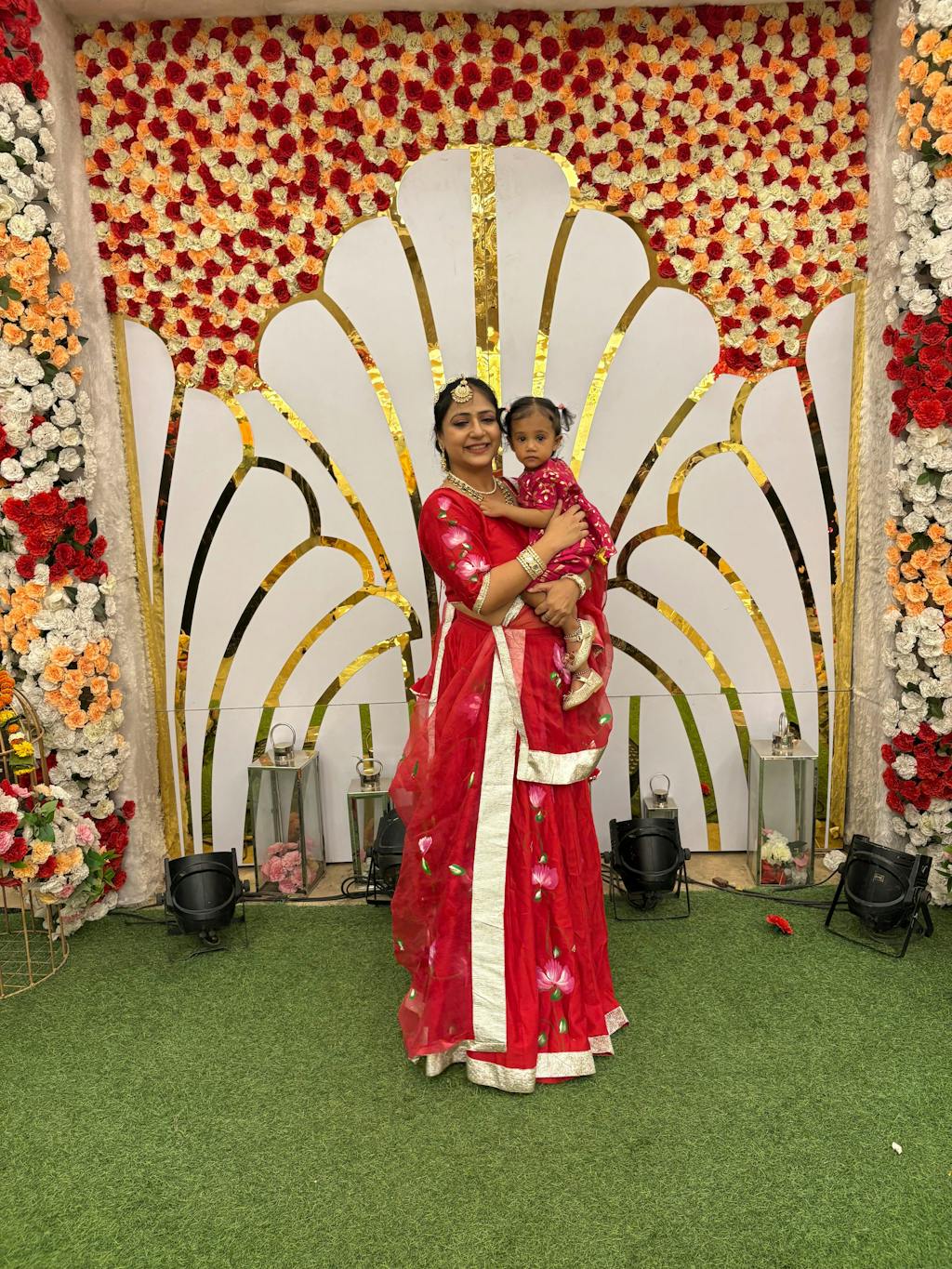 "I'm absolutely in love with this dress from Aachho .The vibrant color is stunning, and the intricate design is truly eye-catching. The combination of both makes this dress a showstopper. Perfect for any occasion, it's a must-have in your wardrobe!"