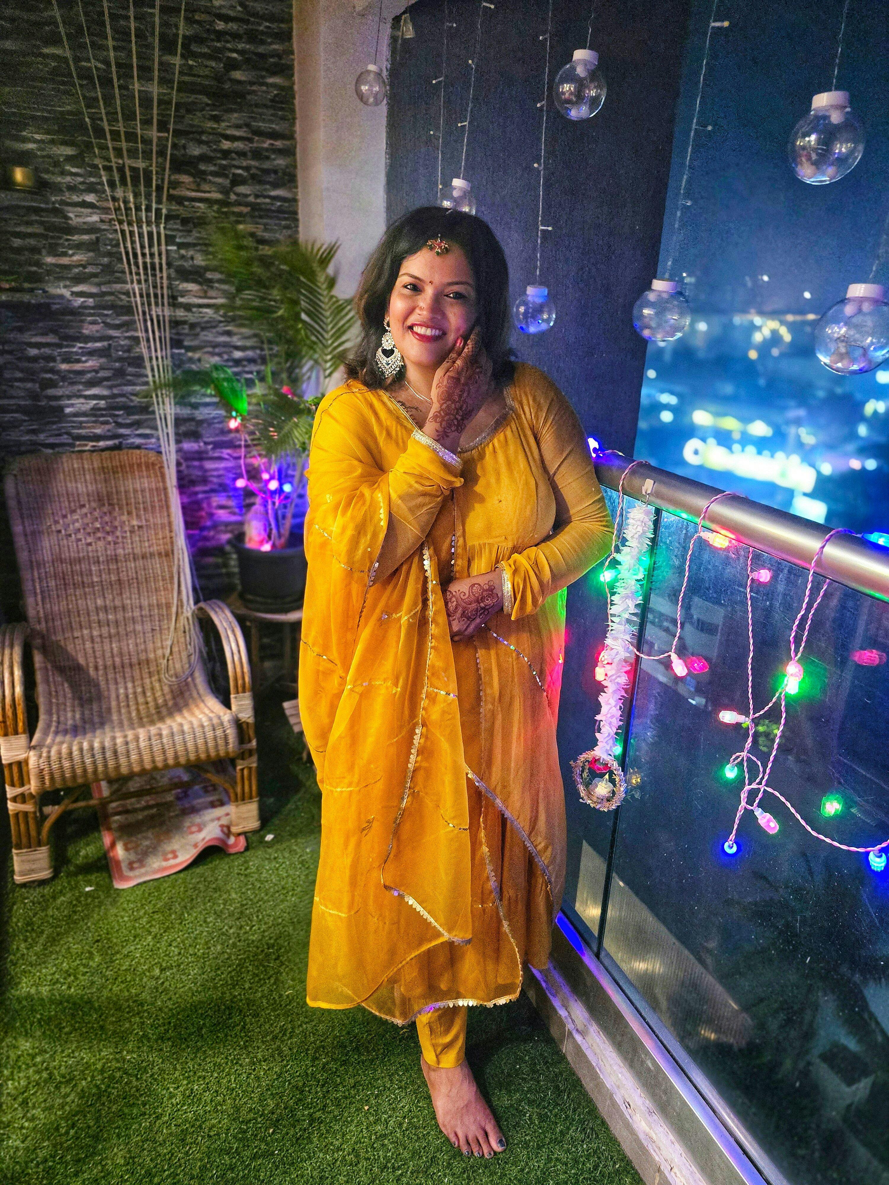 "I'm absolutely in love with this dress from Aachho .The vibrant color is stunning, and the intricate design is truly eye-catching. The combination of both makes this dress a showstopper. Perfect for any occasion, it's a must-have in your wardrobe!"