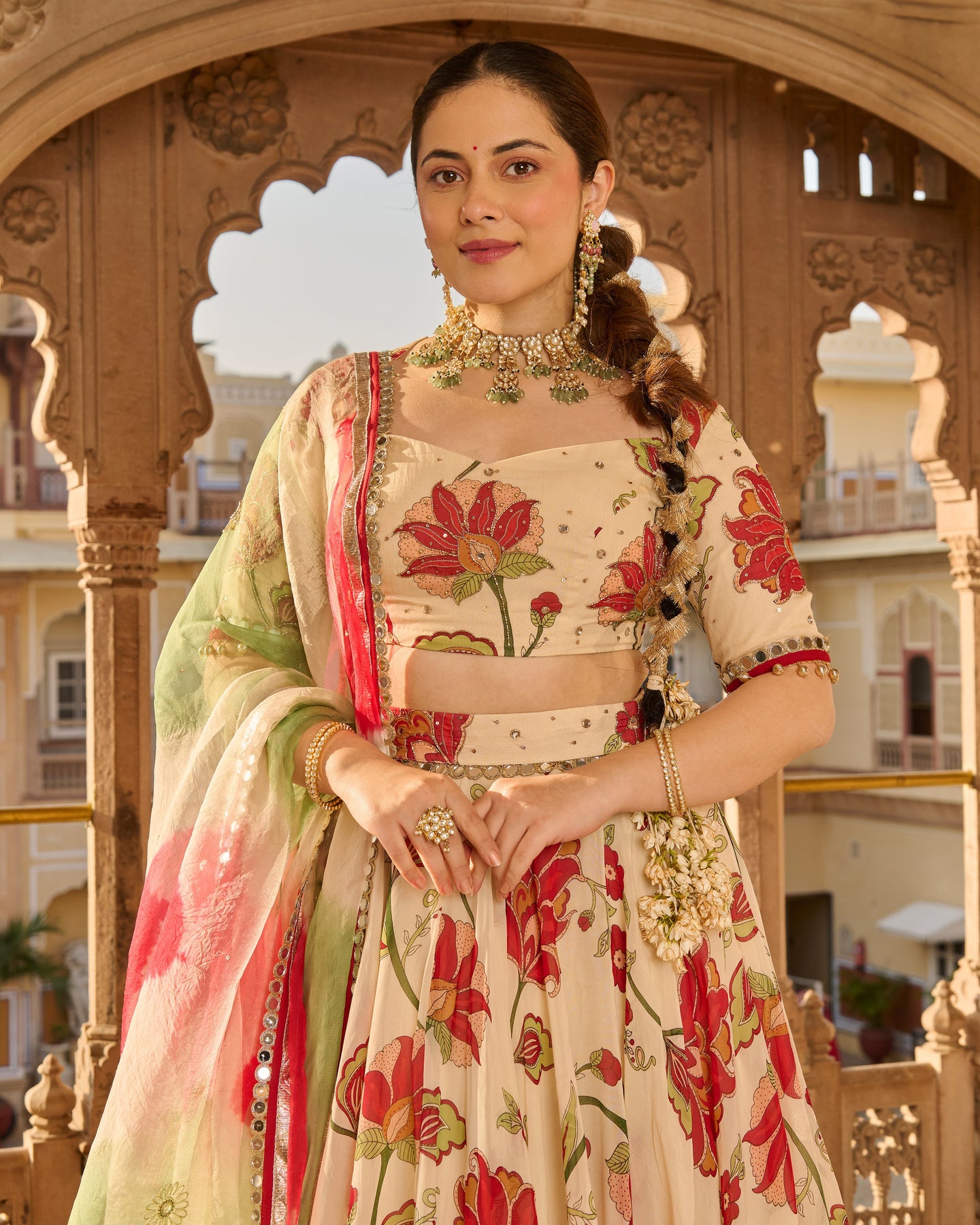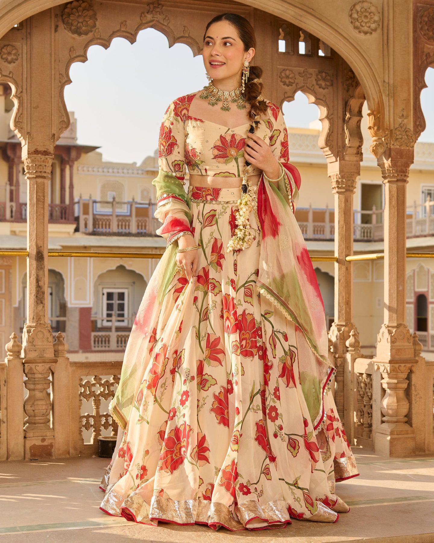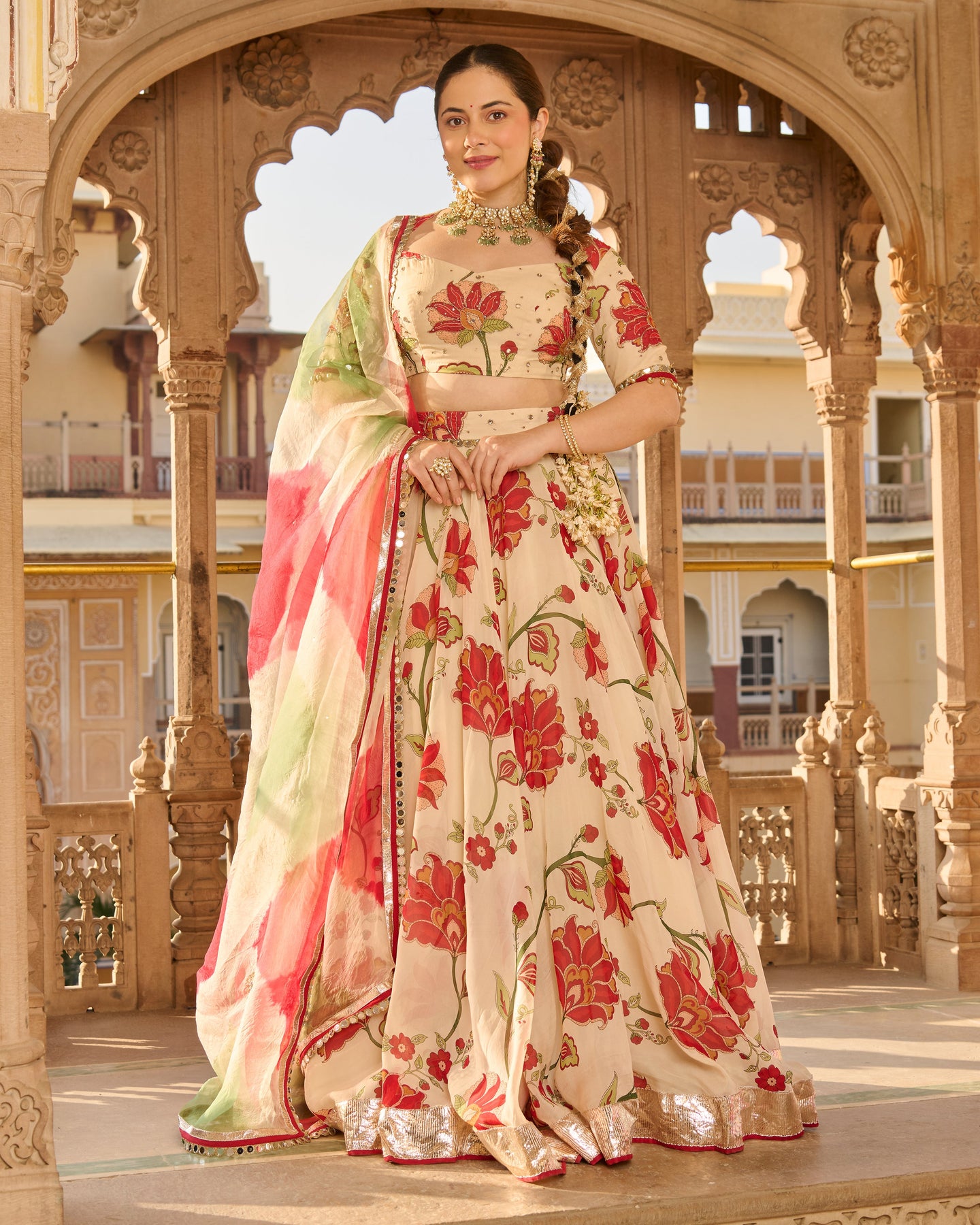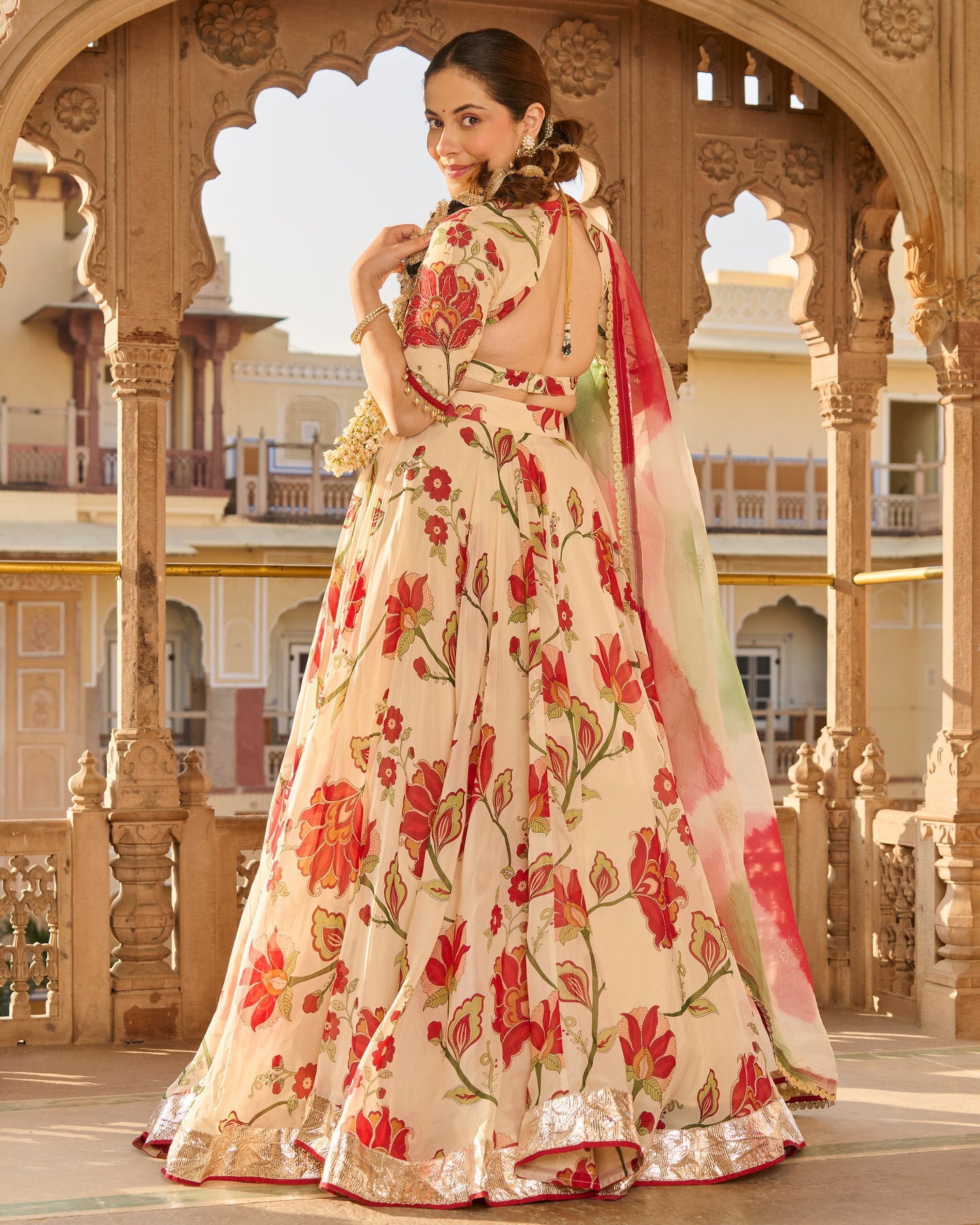 Its beautiful! . Creative. Bottom looks like rose petals near floor. Blouse is totally adjustable along with unique back. Diwali Dream Outfit Came true. However, I wish chunni was of cotton. ORDER atleast one size up.