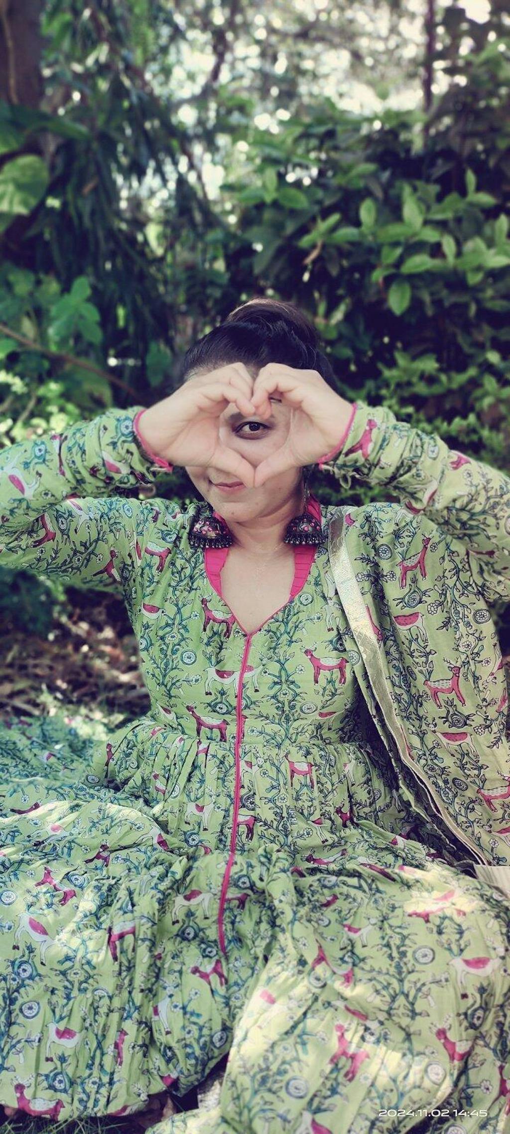 "I'm absolutely in love with this dress from Aachho .The vibrant color is stunning, and the intricate design is truly eye-catching. The combination of both makes this dress a showstopper. Perfect for any occasion, it's a must-have in your wardrobe!"