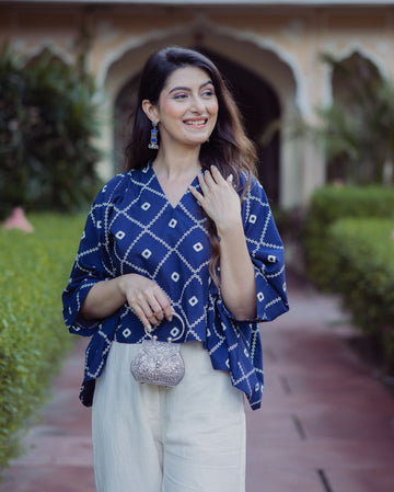 Tarang Pastel Blue Bandhani Silk Suit Set
