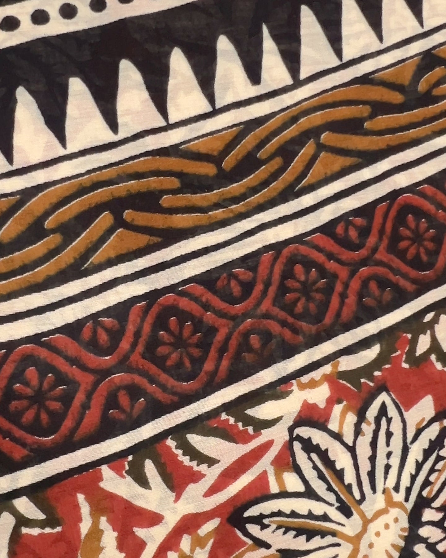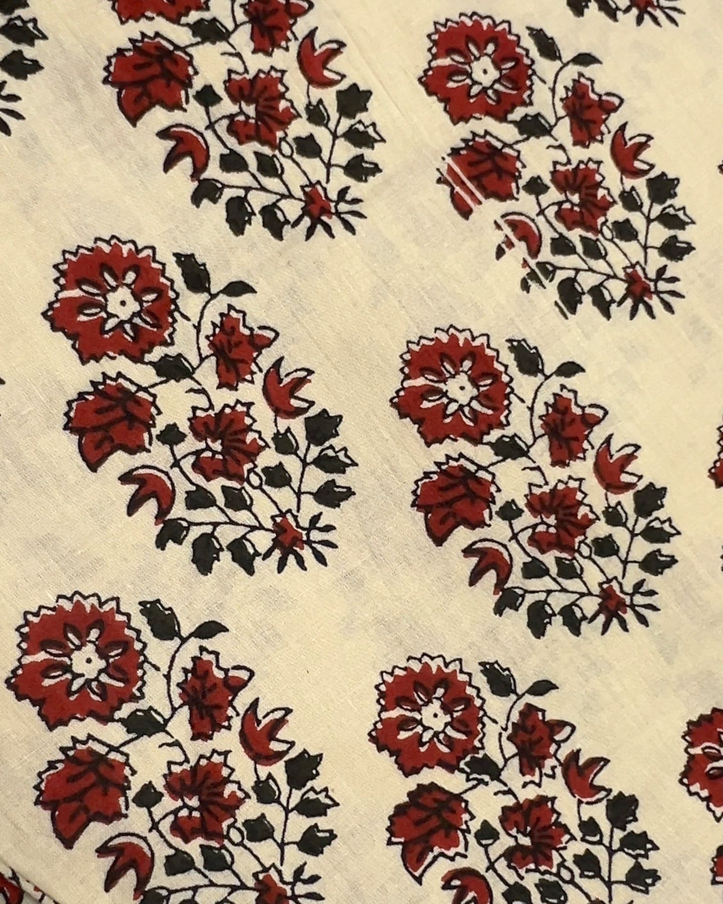 This three-piece Handblock suit set. Color: Bagru Brown Suit Set Fabric: Cotton Dupatta Fabric: Chanderi