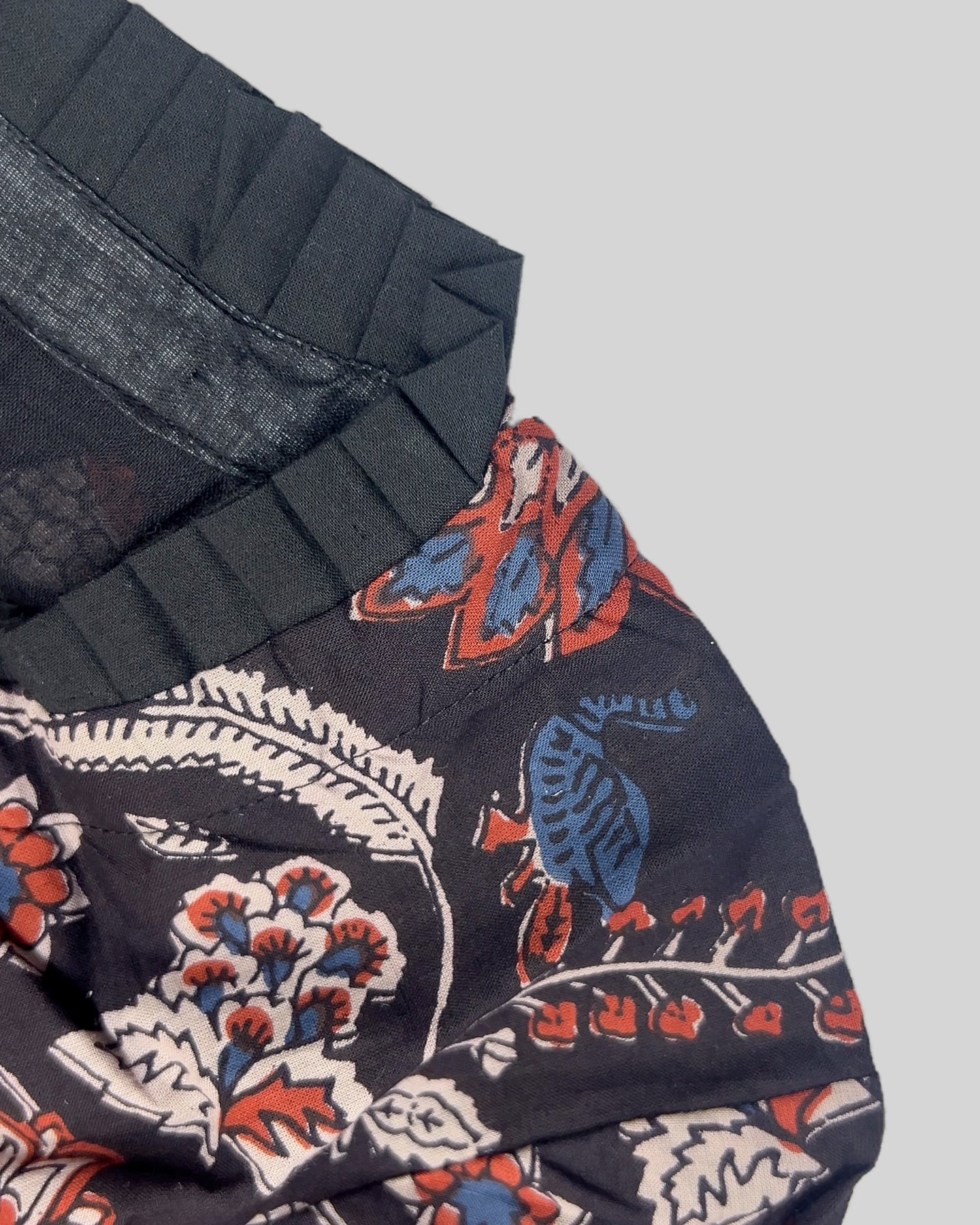 Let yourself loose in this ultra glamorous and super comfortable Vaniki Handblock Tier Sharara Set. A true amalgam of modern style and traditional hand block print, this sharara set will keep all eyes on you.