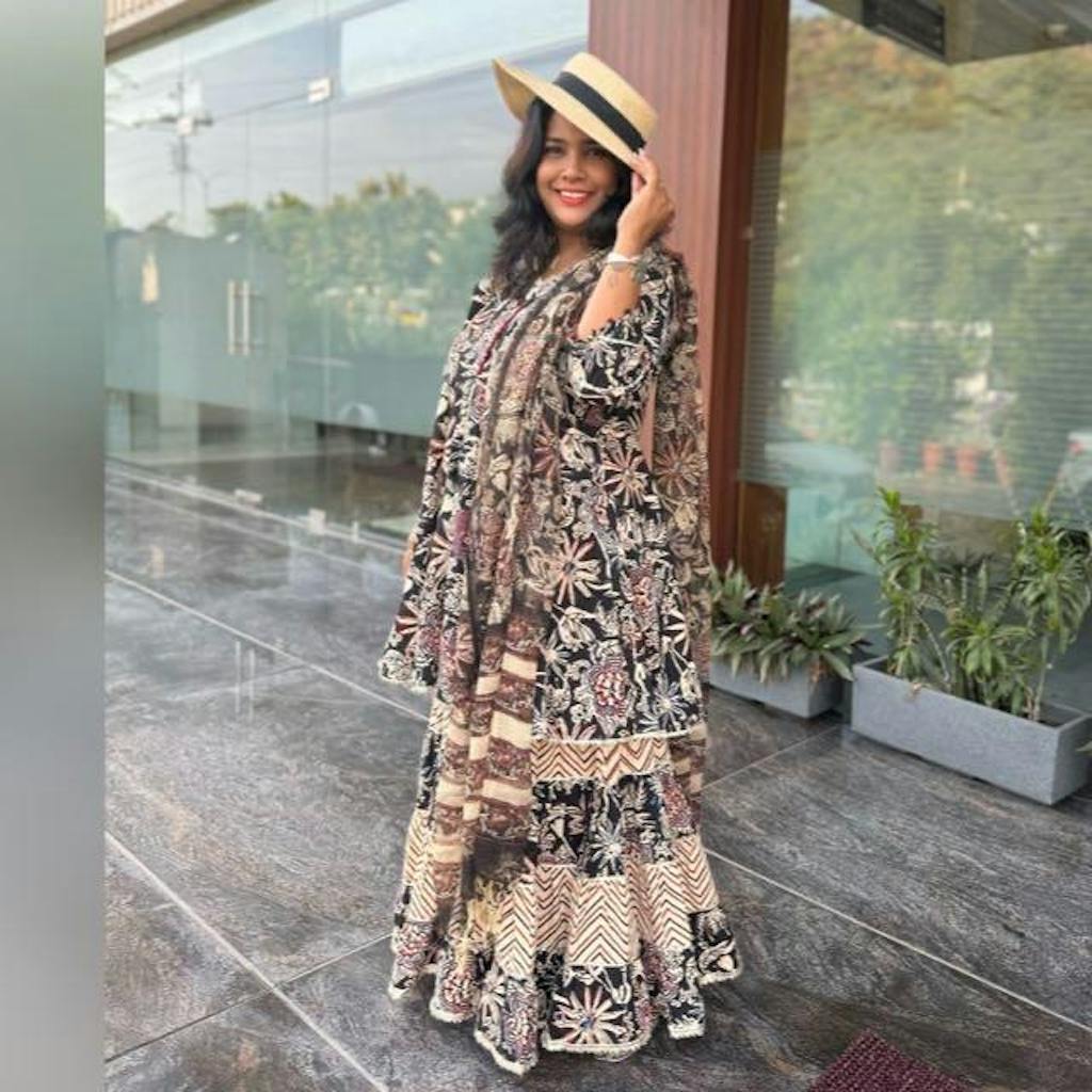 "I'm absolutely in love with this dress from Aachho .The vibrant color is stunning, and the intricate design is truly eye-catching. The combination of both makes this dress a showstopper. Perfect for any occasion, it's a must-have in your wardrobe!"