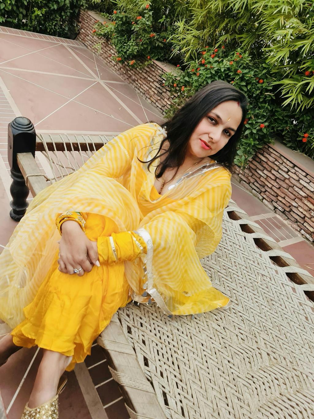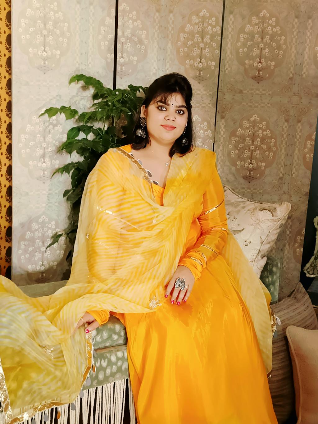 "I'm absolutely in love with this dress from Aachho .The vibrant color is stunning, and the intricate design is truly eye-catching. The combination of both makes this dress a showstopper. Perfect for any occasion, it's a must-have in your wardrobe!"