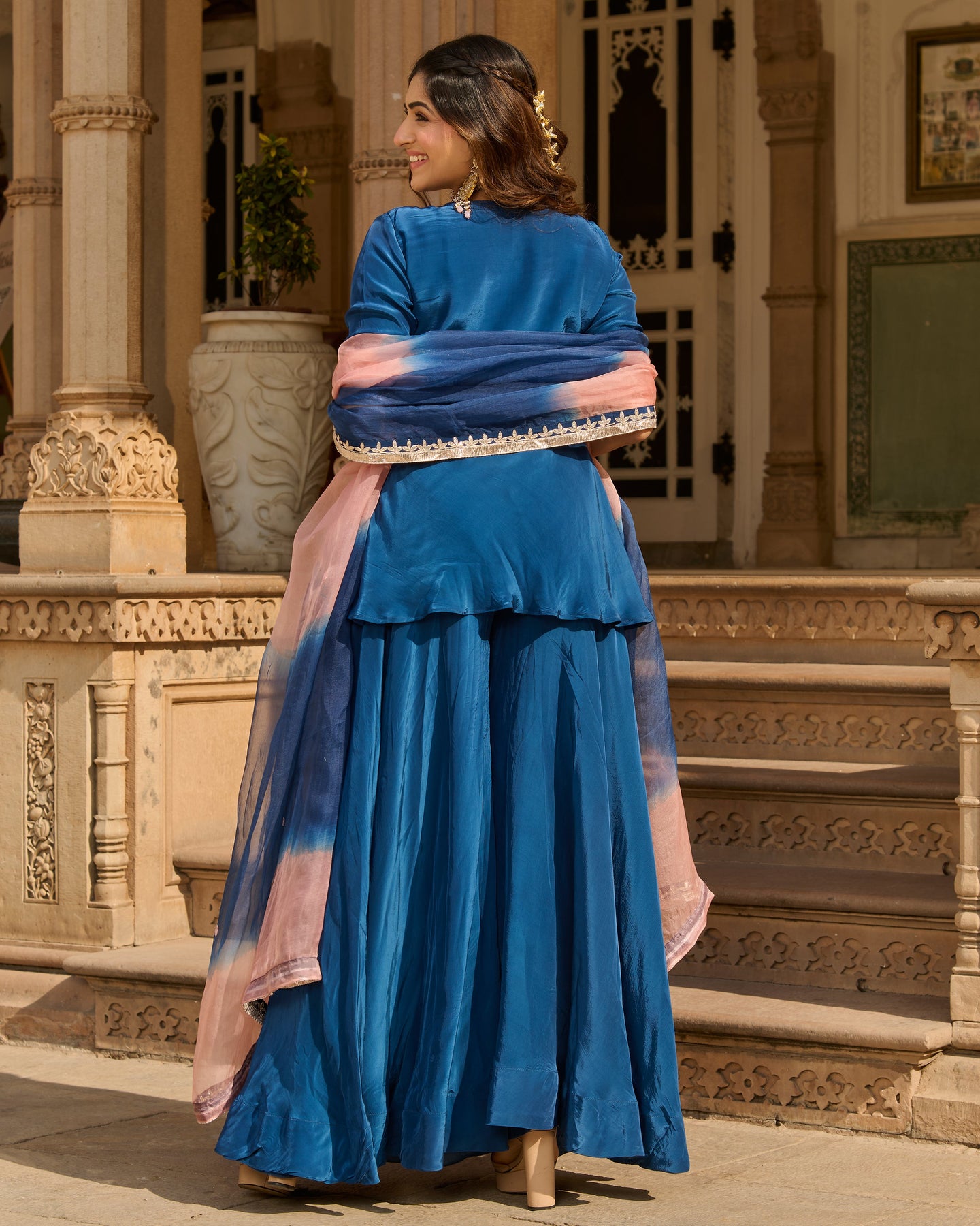 Its beautiful! . Creative. Bottom looks like rose petals near floor. Blouse is totally adjustable along with unique back. Diwali Dream Outfit Came true. However, I wish chunni was of cotton. ORDER atleast one size up.
