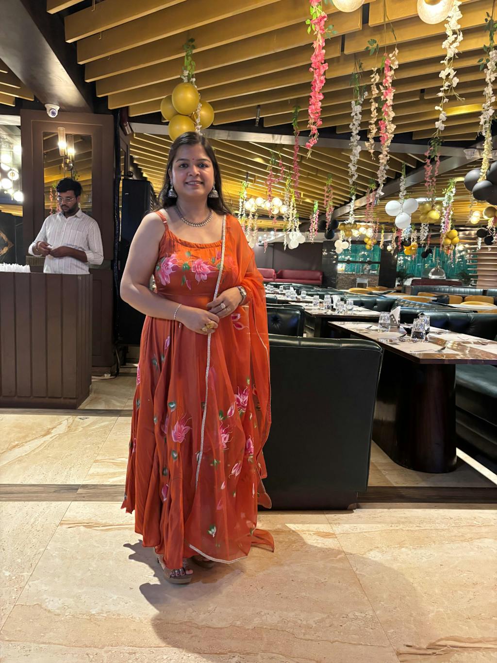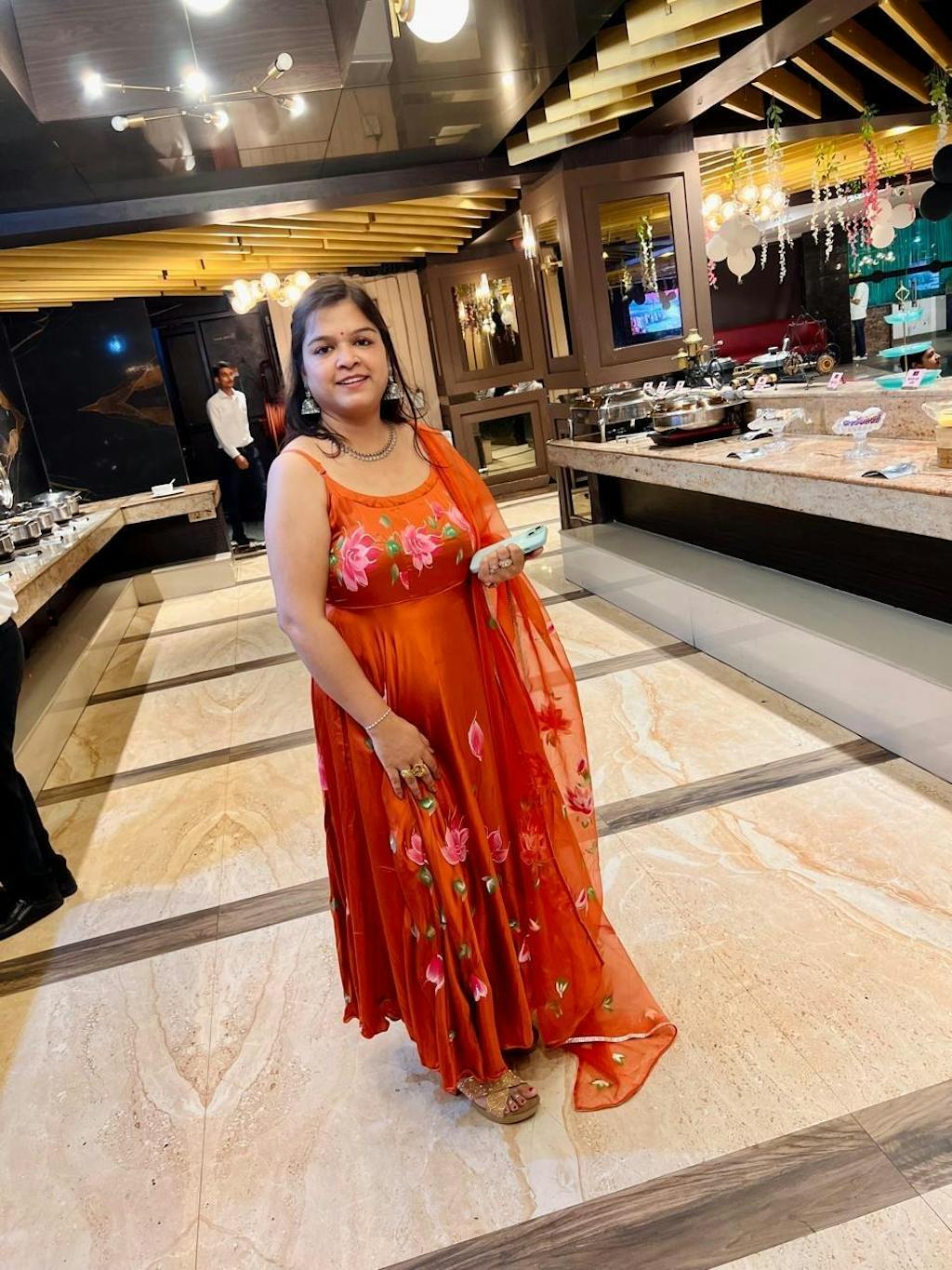 "I'm absolutely in love with this dress from Aachho .The vibrant color is stunning, and the intricate design is truly eye-catching. The combination of both makes this dress a showstopper. Perfect for any occasion, it's a must-have in your wardrobe!"