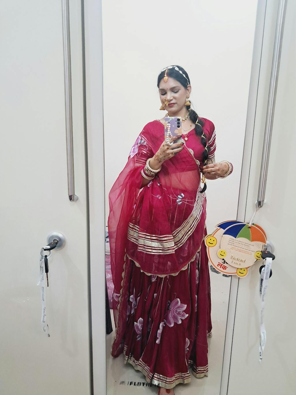 Its beautiful! . Creative. Bottom looks like rose petals near floor. Blouse is totally adjustable along with unique back. Diwali Dream Outfit Came true. However, I wish chunni was of cotton. ORDER atleast one size up.