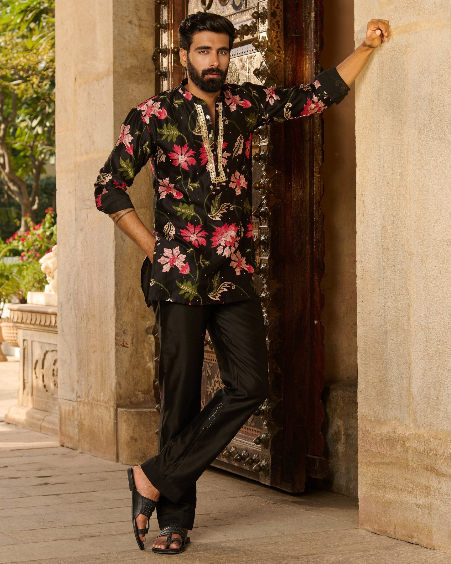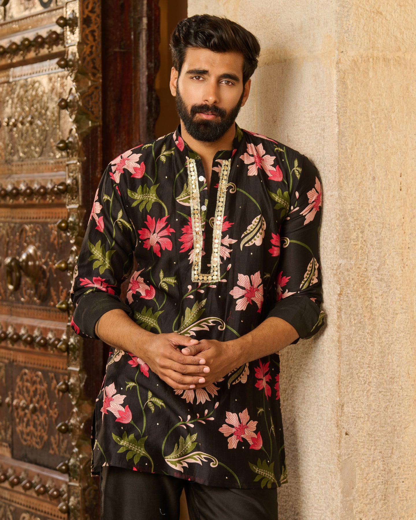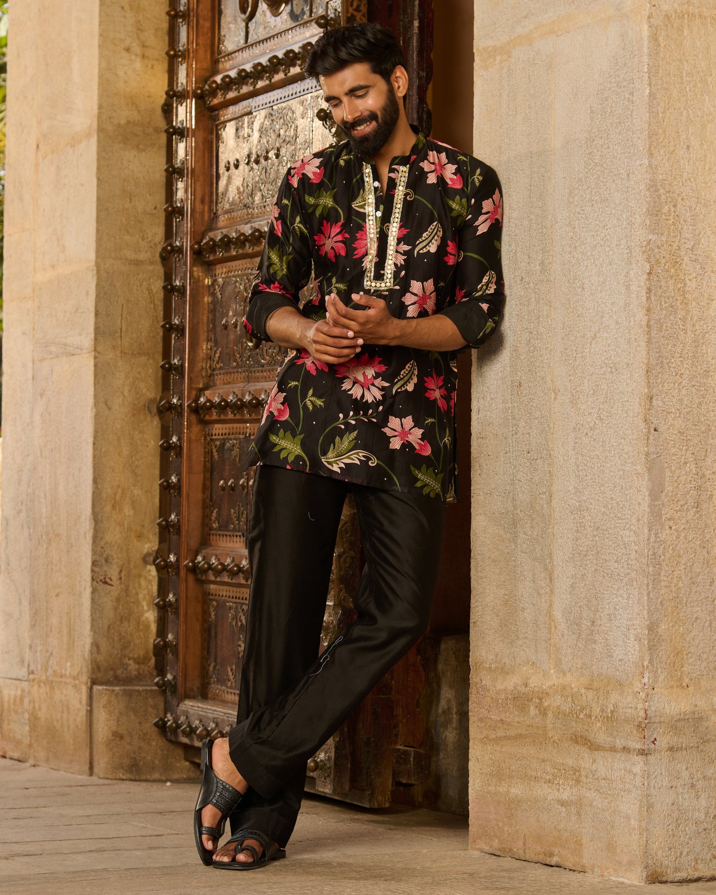 Keshav Black Printed Chanderi Kurta