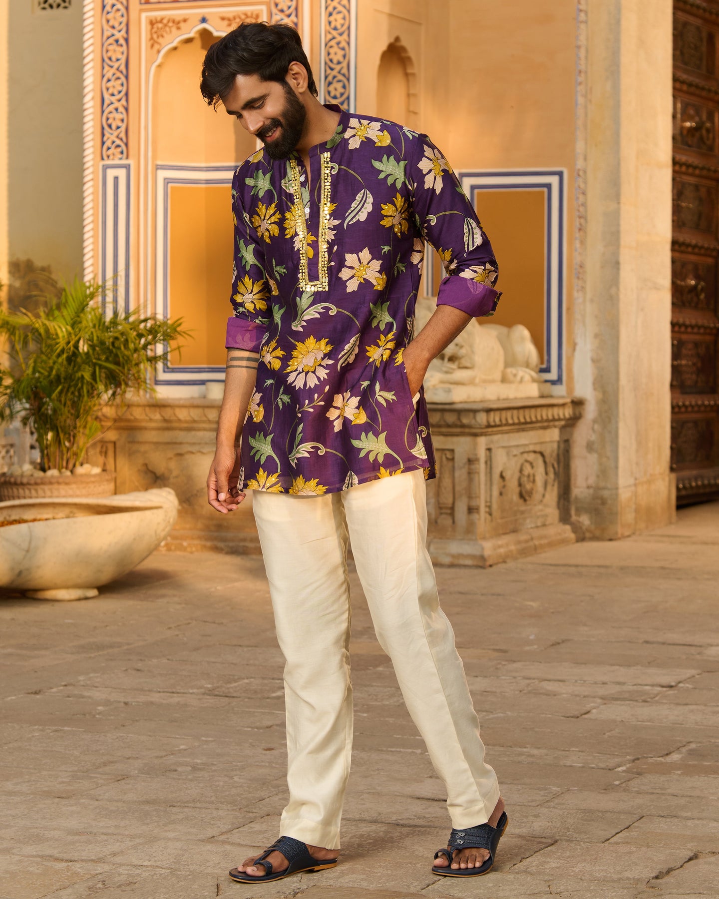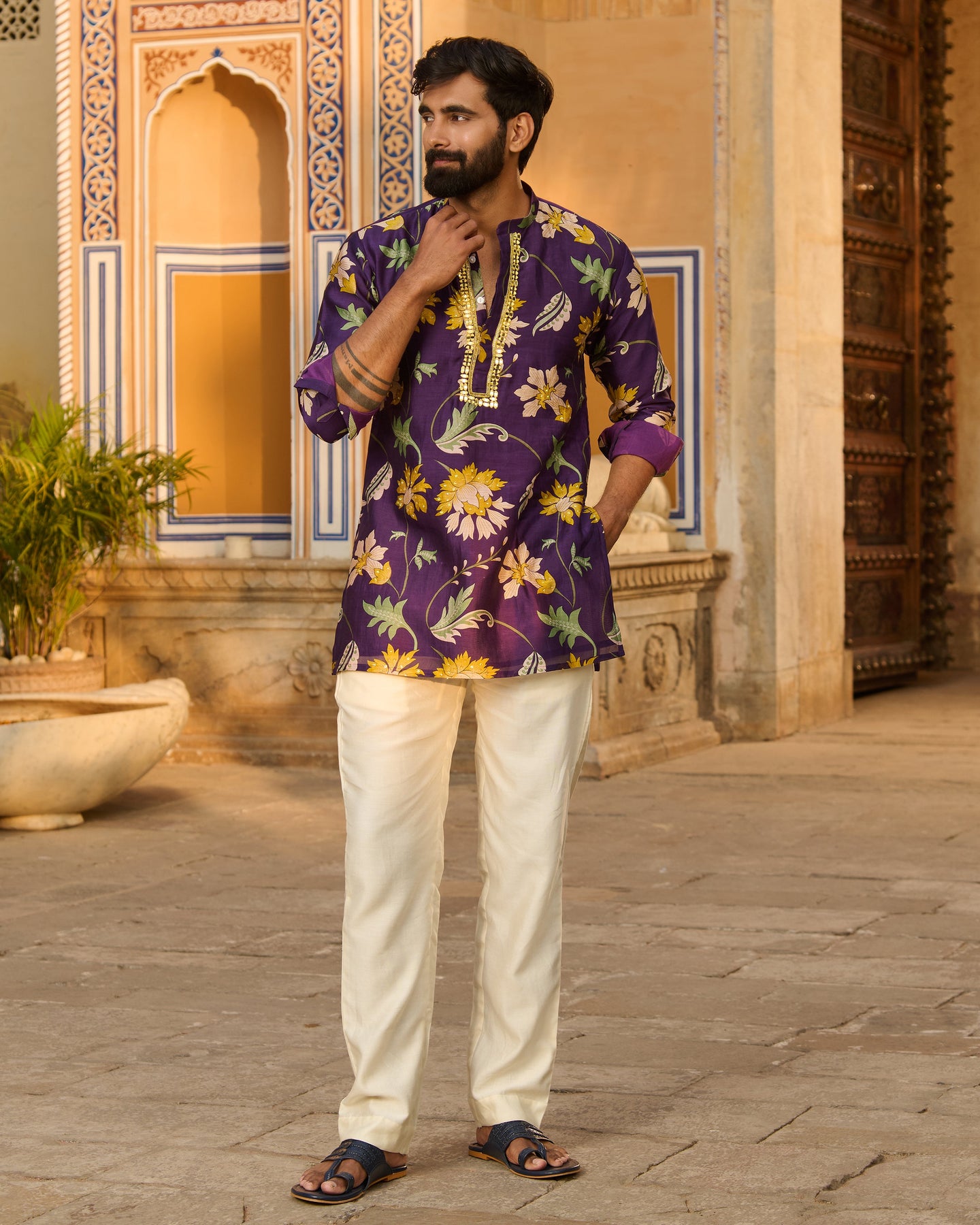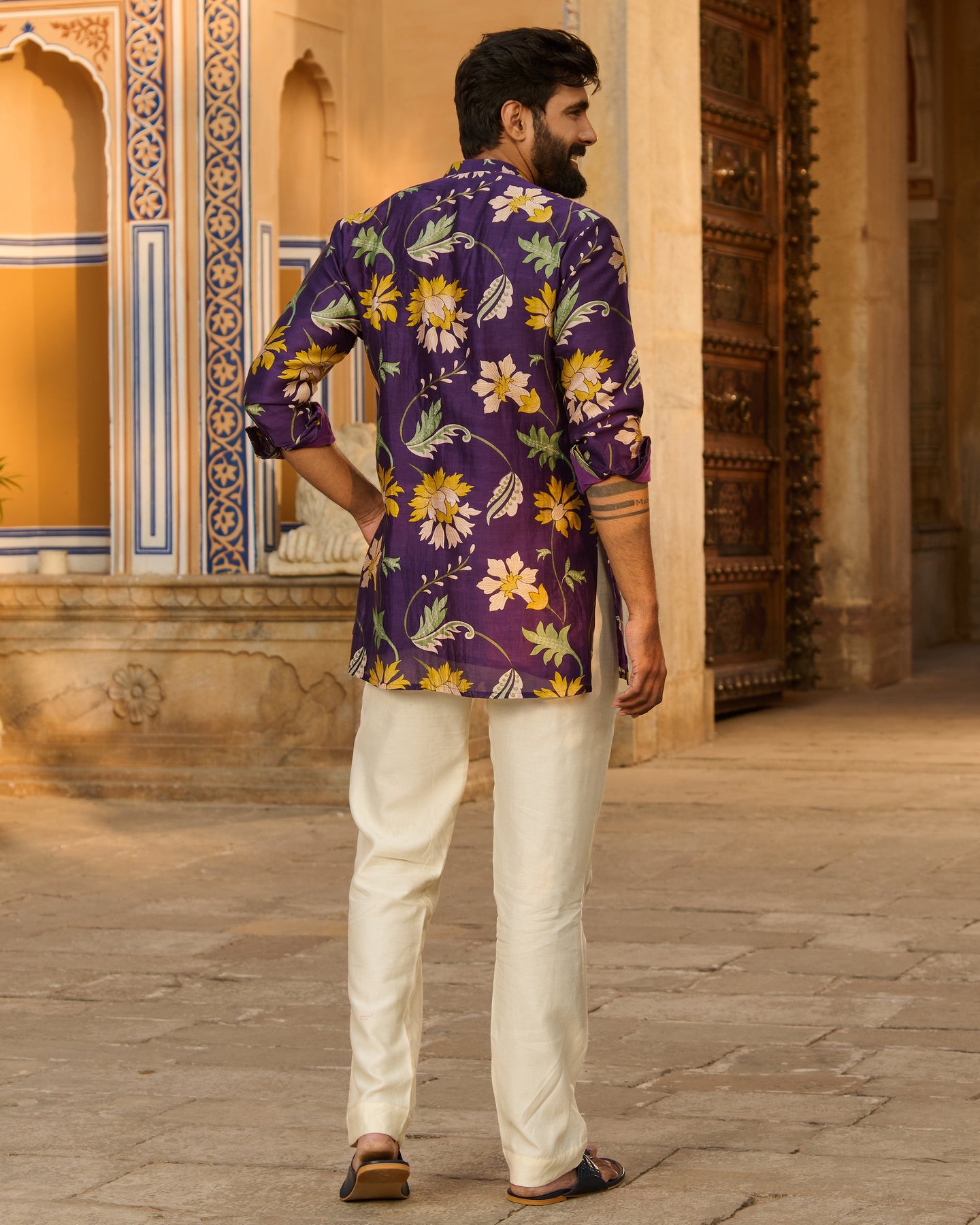 Yuvraj Purple Printed Chanderi Kurta