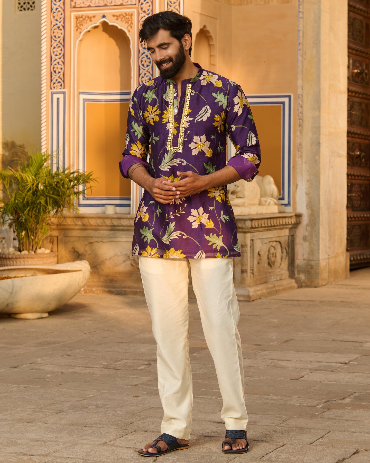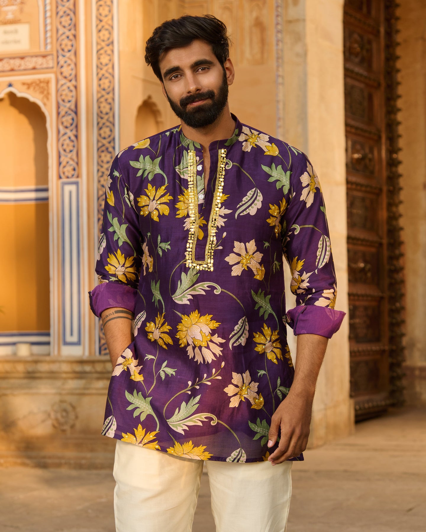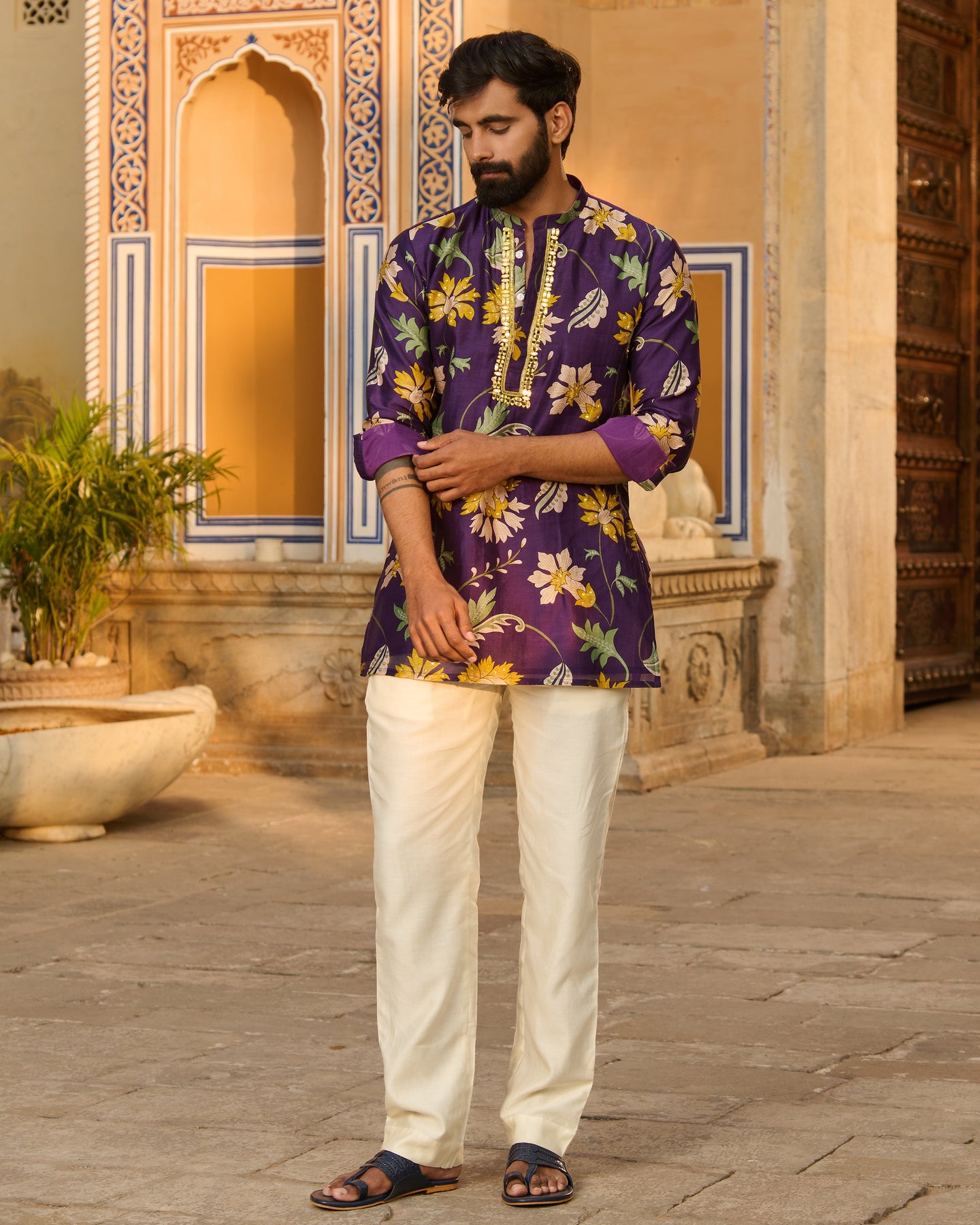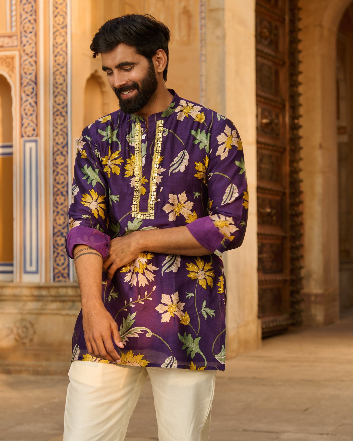 Yuvraj Purple Printed Chanderi Kurta