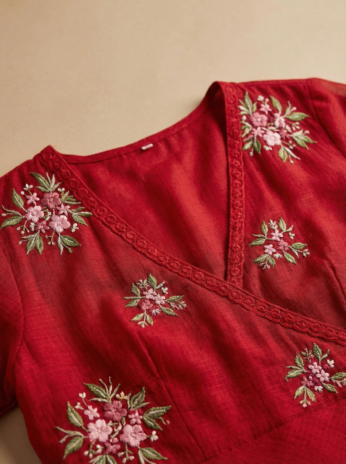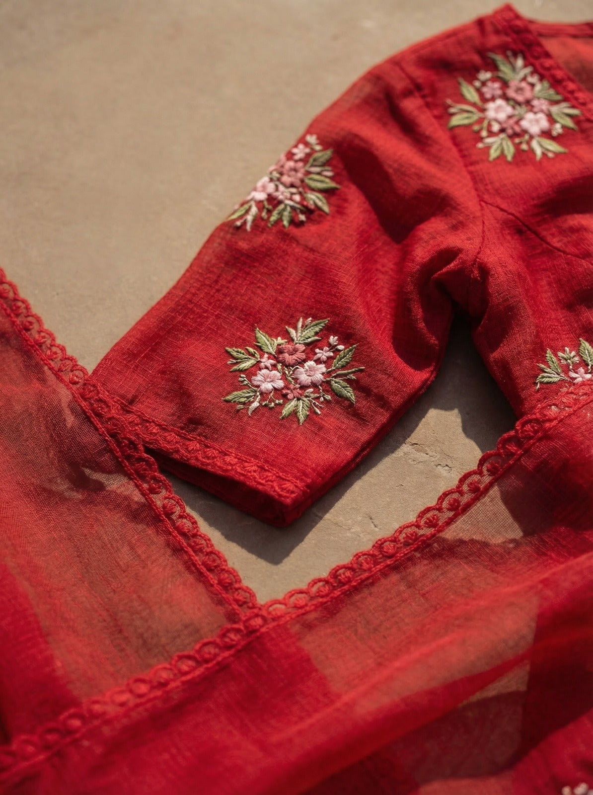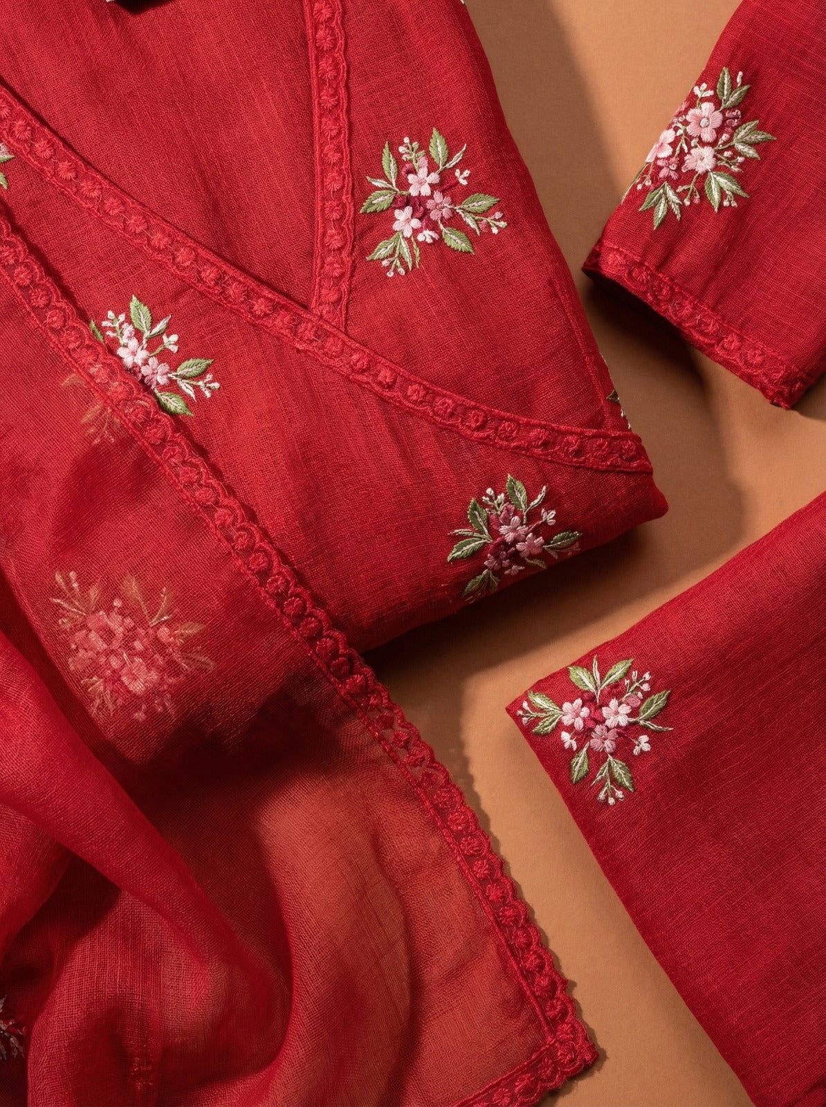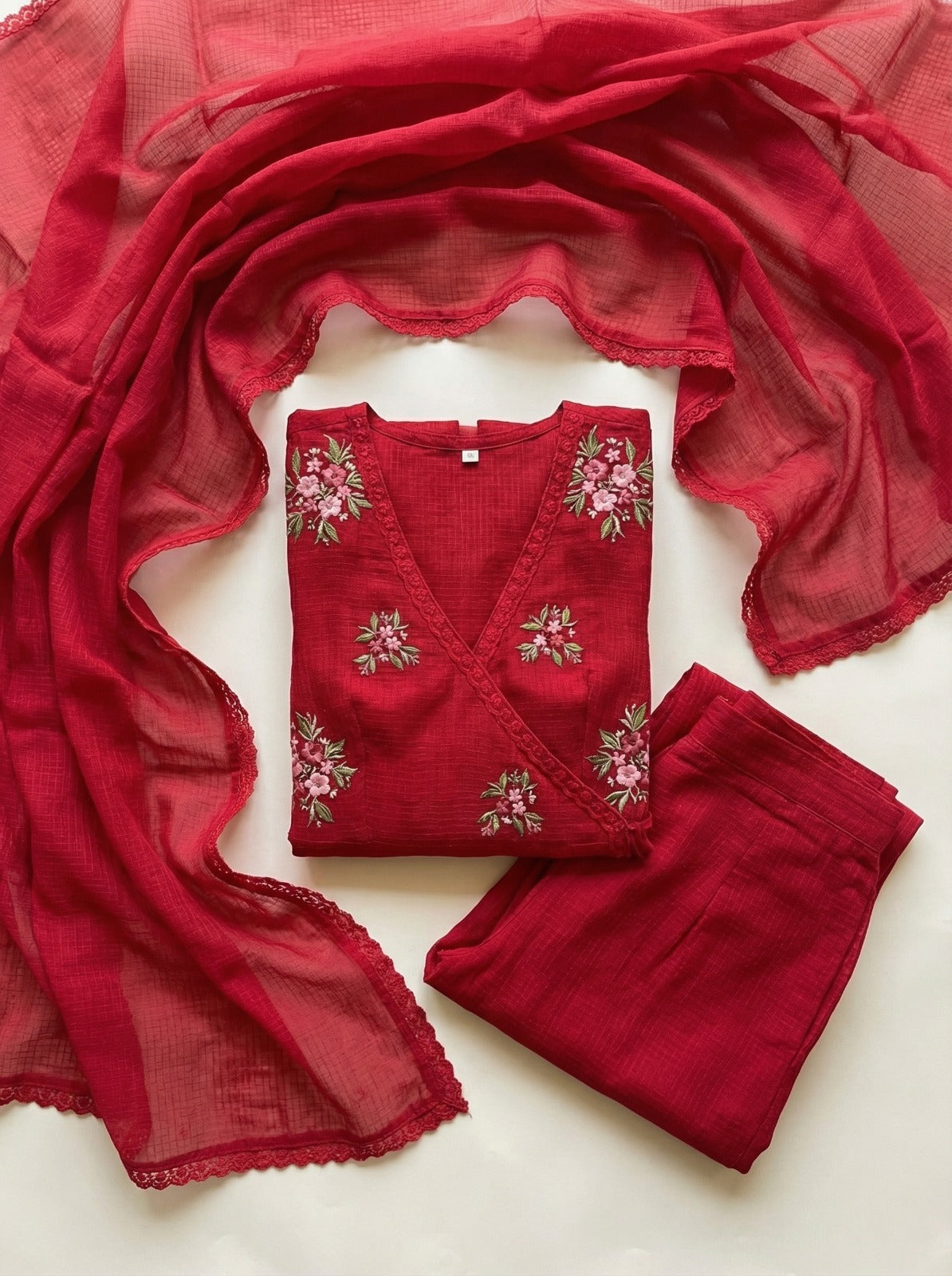 Ruby Red Embroidered Doria Suit Set