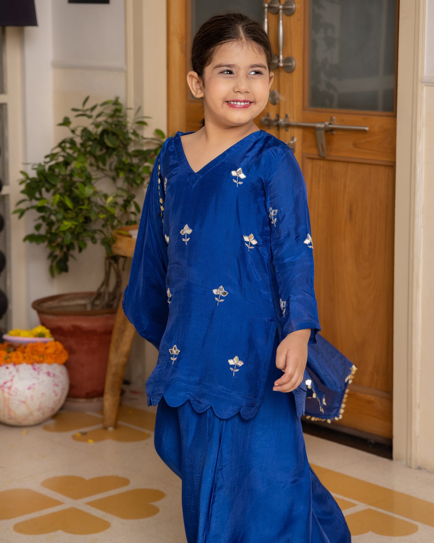 Aira Blue Solid Silk Suit Set