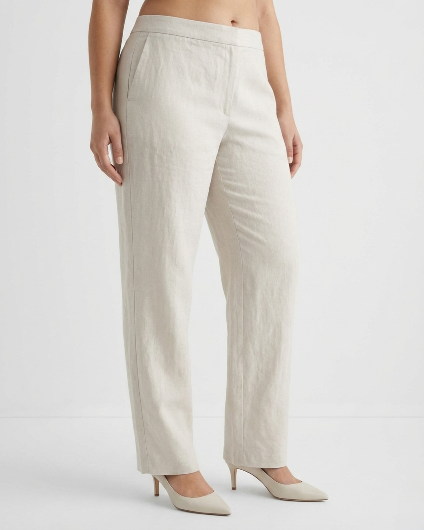 Amora off-white Linen Straight Pants