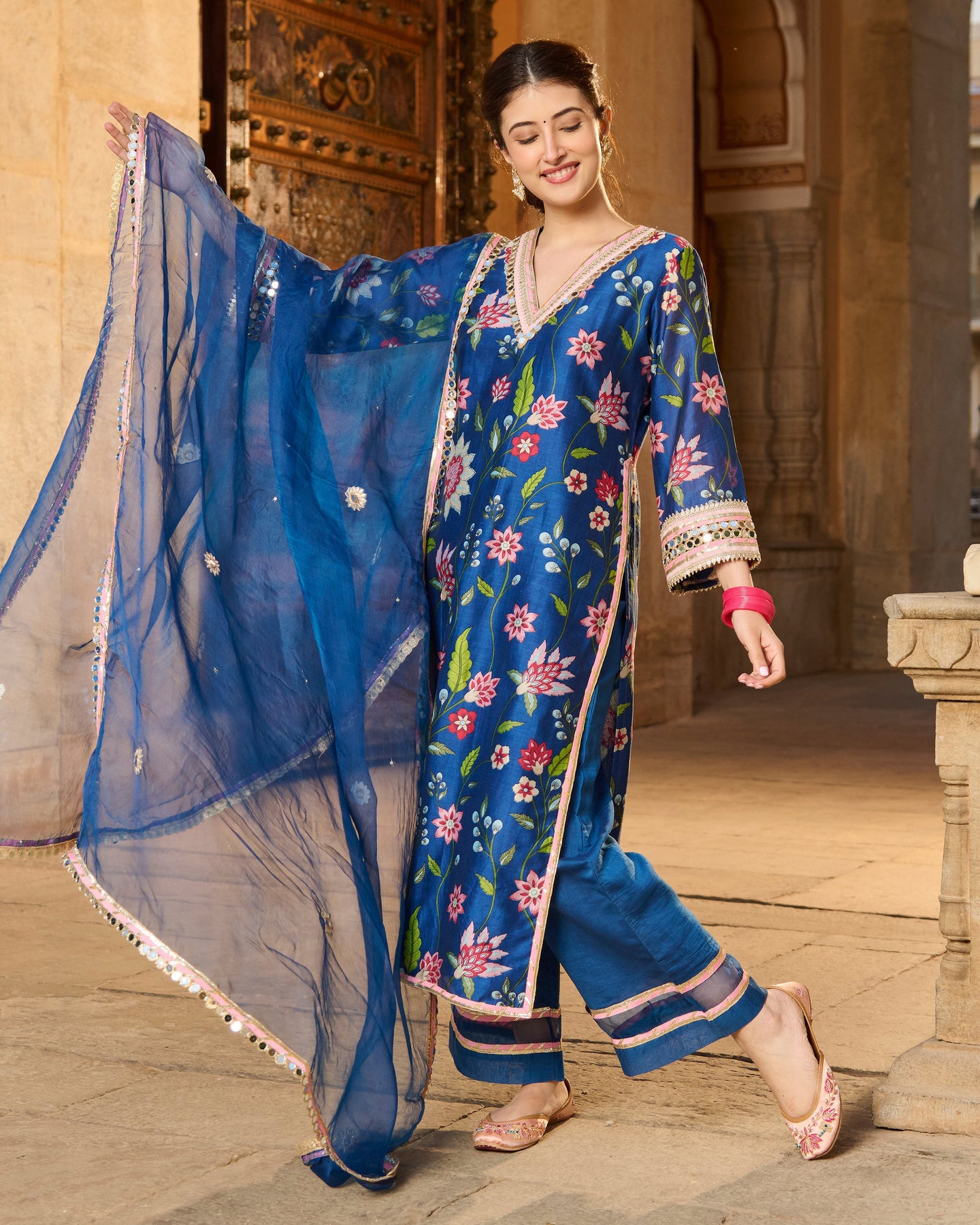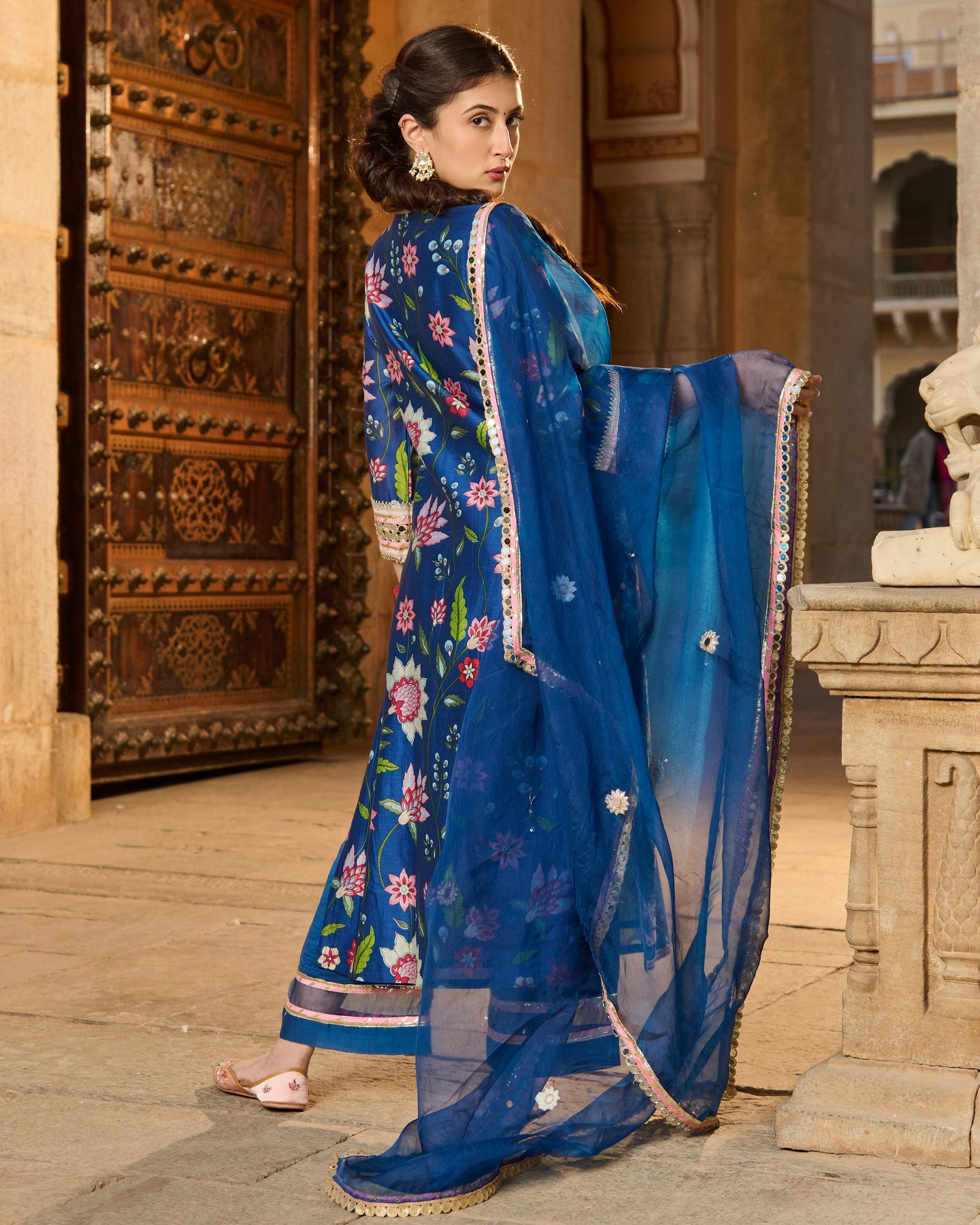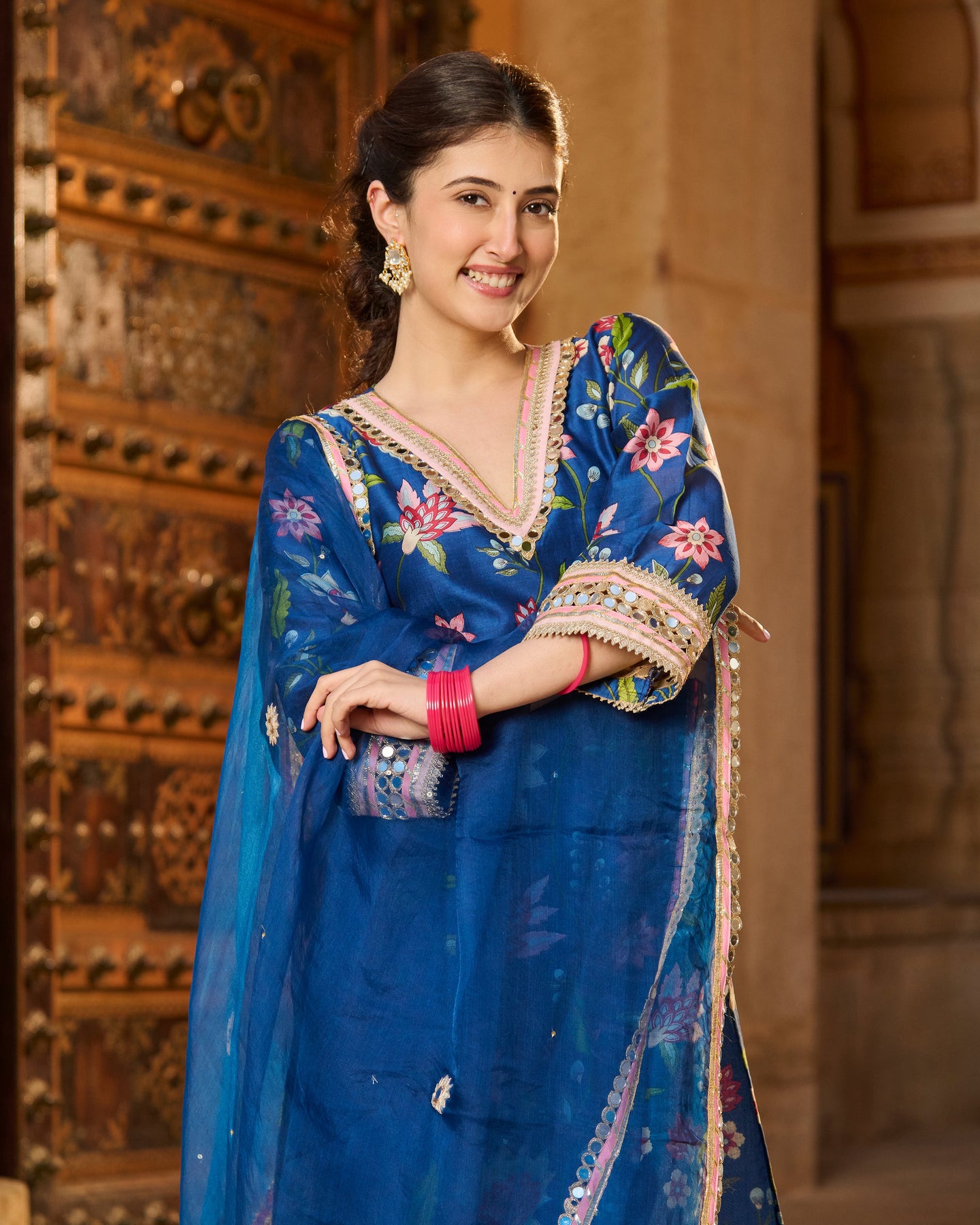 Tarang Pastel Blue Bandhani Silk Suit Set